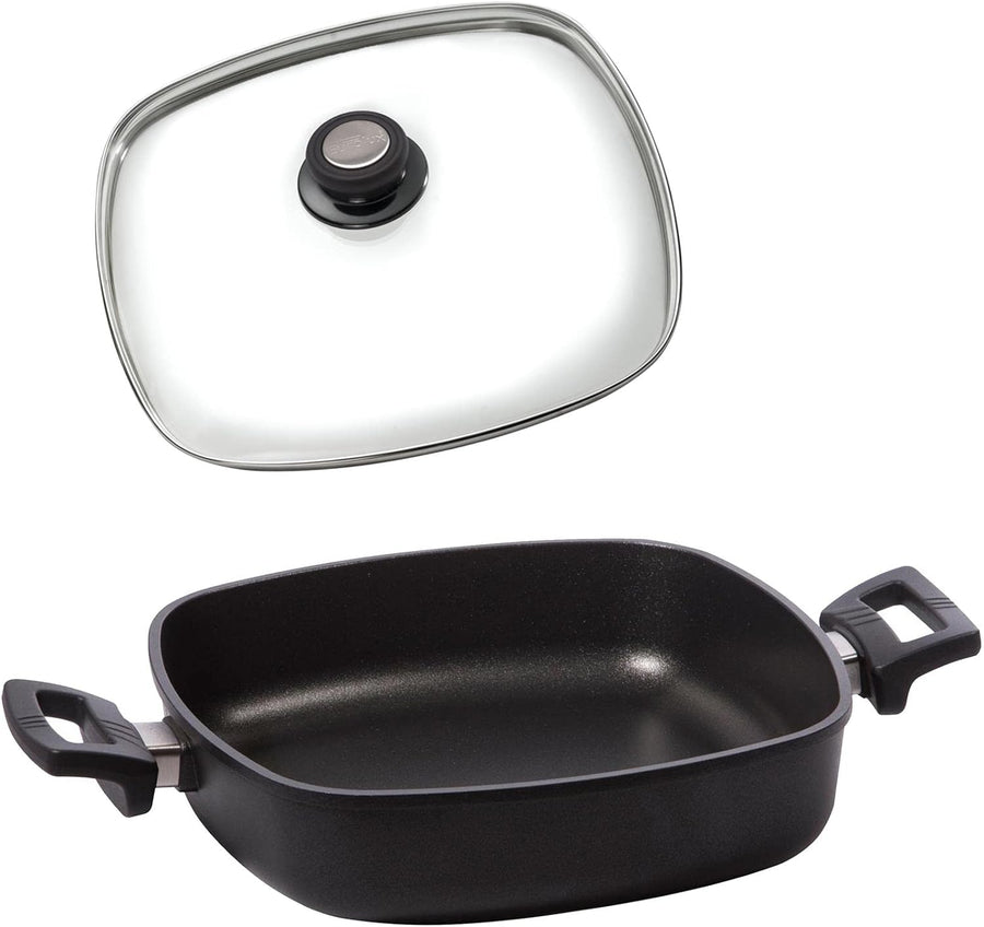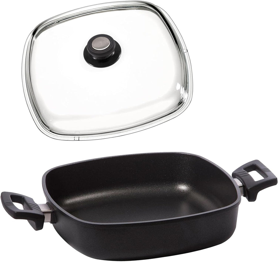 Eurloux Guss-Kasserolle Induktion Set & Glas-Deckel 28 x 28 cm - quadratische Universal Bratenkasser