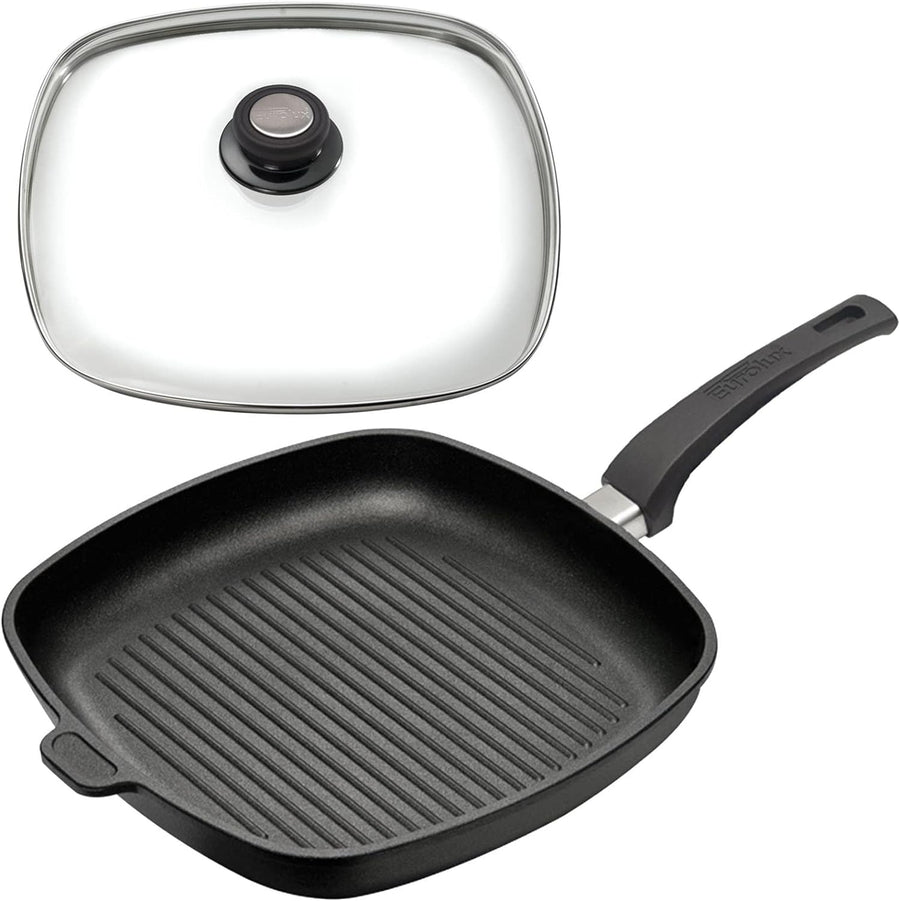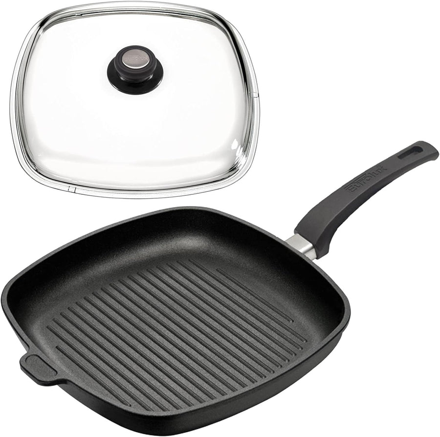 Eurolux Grillpfanne Set & Glas-Deckel 28x28 cm - grosse flache quadratische Guss-Pfanne mit Beschich