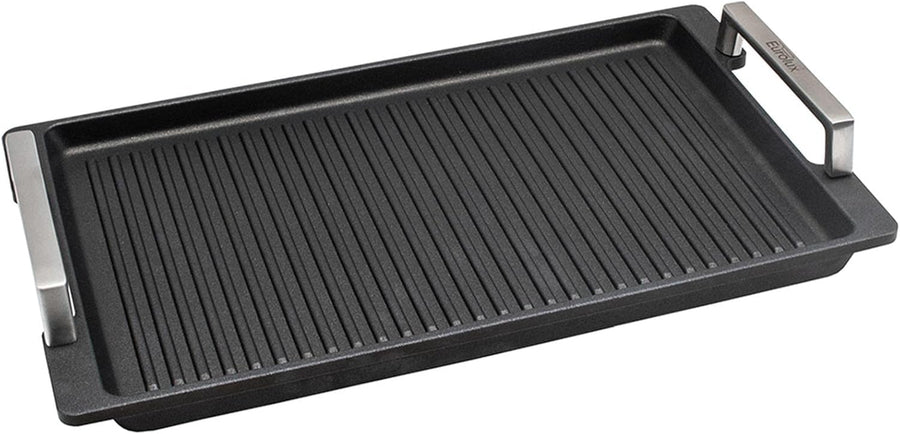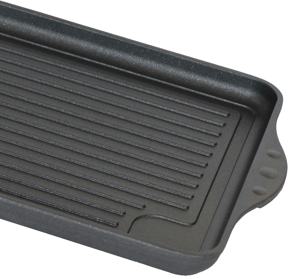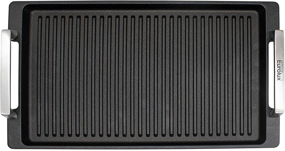 Eurolux geriffelte Grillplatte 41 x 24 cm - induktive vollflächig gerillte Servierplatte Aluguss bes