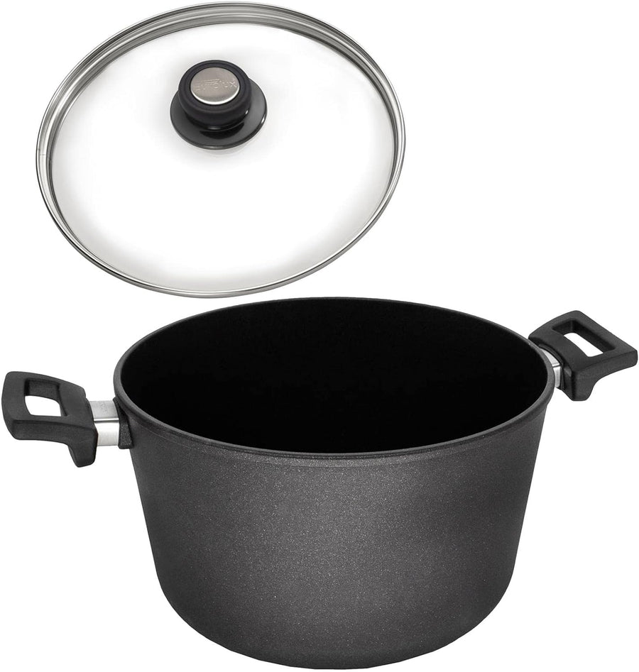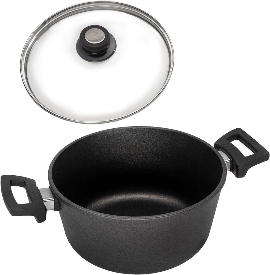 Eurolux Guss-Topf Set & Glas-Deckel Ø 24 cm - ca. 4,5 Liter - kleiner hoher Universal-Koch-Topf Alug