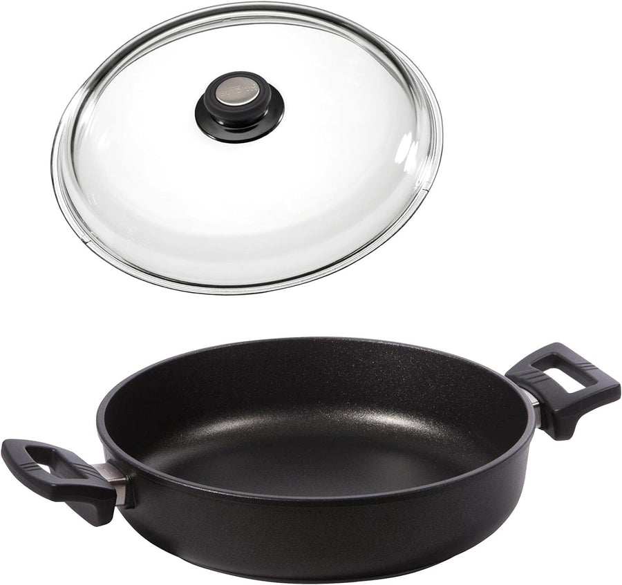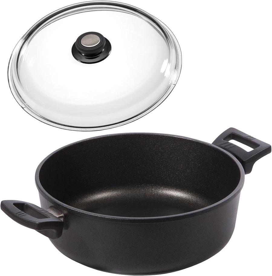 Eurolux Guss-Pfanne Induktion Set & Glas-Deckel Ø 28 cm abnehmbarer Griff - hoher Rand 7 cm - Alugus