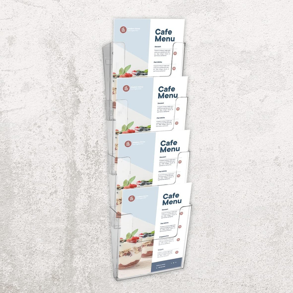 Europel Prospekthalter Wandmontage, Mehrfach, 4 Fächer DIN A4, Aanschliessbar, Erweiterbar, Transpar