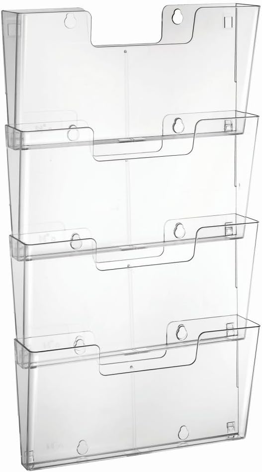Europel Prospekthalter Wandmontage, Mehrfach, 4 Fächer DIN A4, Anschliessbar, Erweiterbar, Transpare