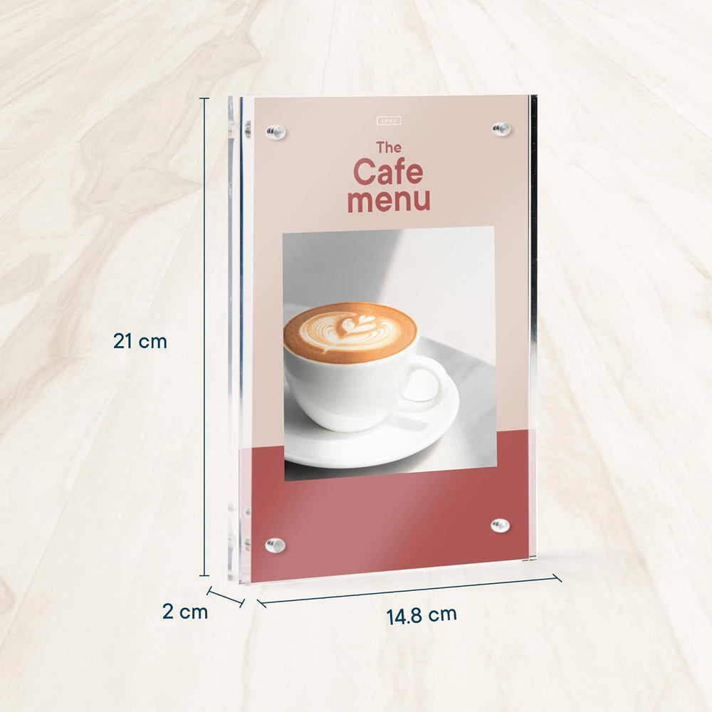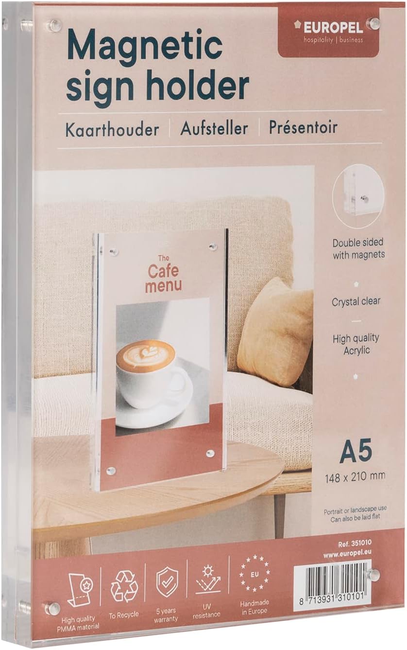 EUROPEL Luxe Tischaufsteller DIN A5 mit Magnete, Hoch- oder Querformat, Acryl, 2x10mm, Speisekarten
