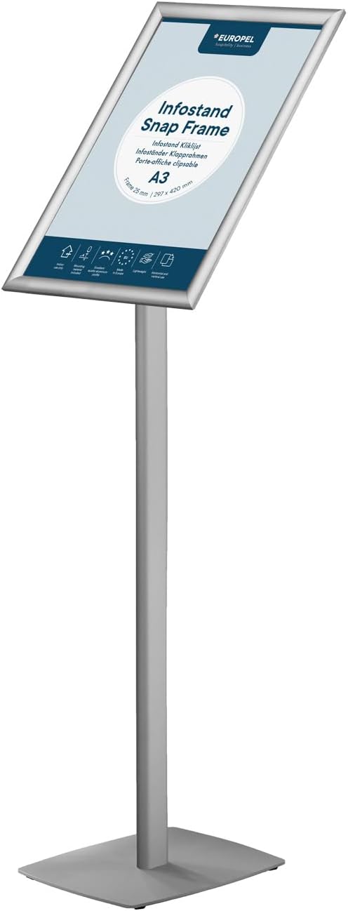 EUROPEL Infoständer mit A3 Klapprahmen - Drehbar im Hoch- oder Querformat - Ständer für Austauschbar