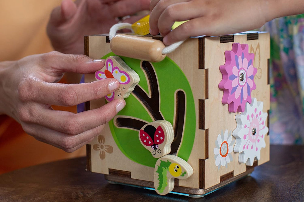 EverEarth 6 in 1 Mini Garten Abenteuer Motorikwürfel aus Holz mit zahlreichen Aktivitäten - Busy Cub