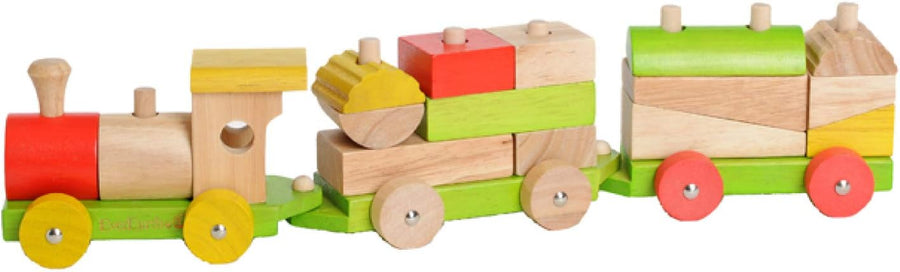 EverEarth Kinder Holz Eisenbahn mit Stapelspiel und Holzbausteinen - Zugspielzeug mit Formensortiers