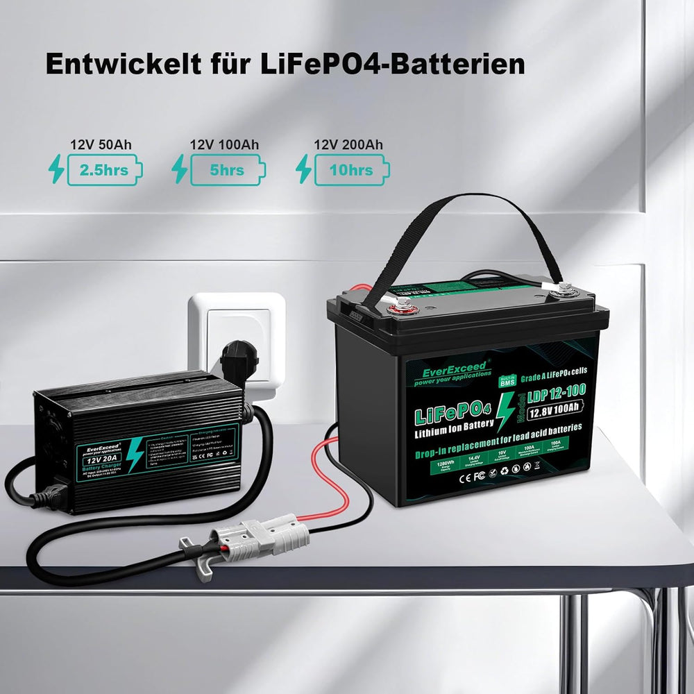 EverExceed Lithium Ladegerät 12V 20A 14,6V Ladegerät Lifepo4 AC-DC, Batterieladegerät Lifepo4 20A fü