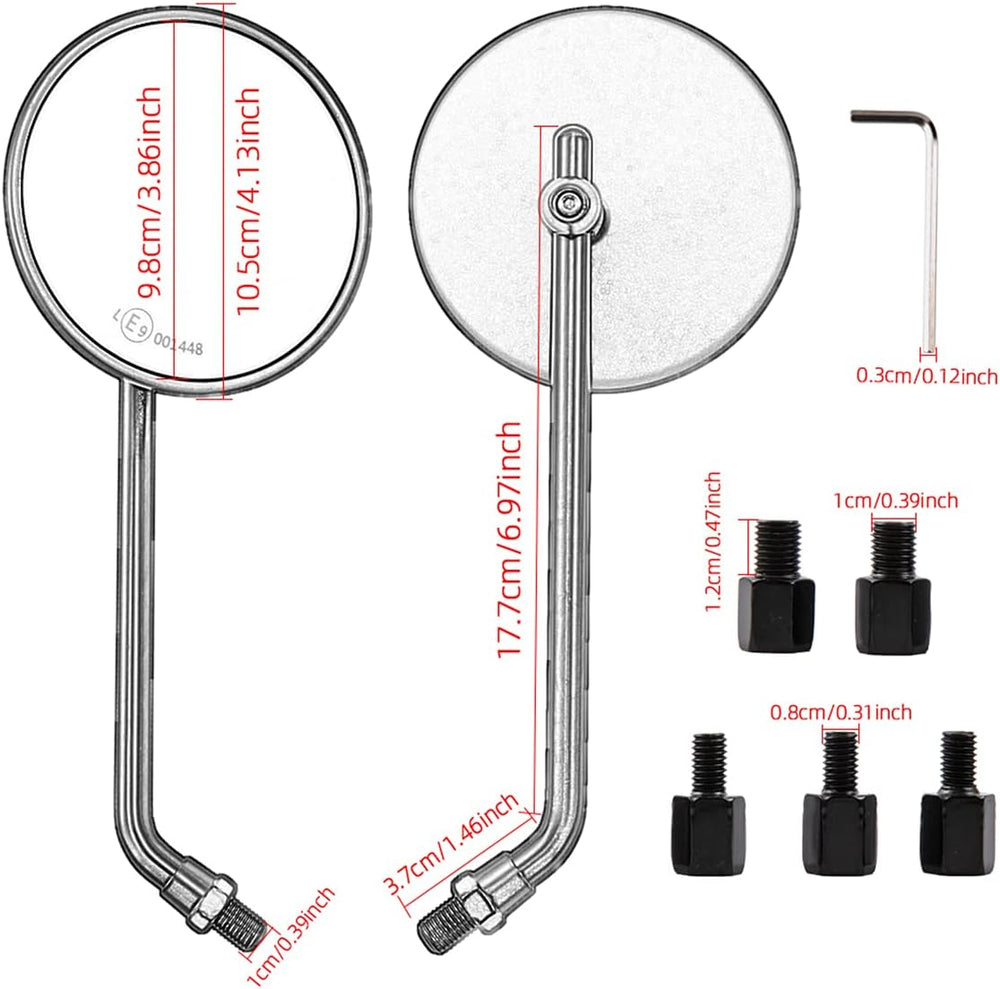 Motorrad Seitenspiegel Rund E9 CNC Rückspiegel 10mm Schrauben für Cafe Racer Bobber Chopper