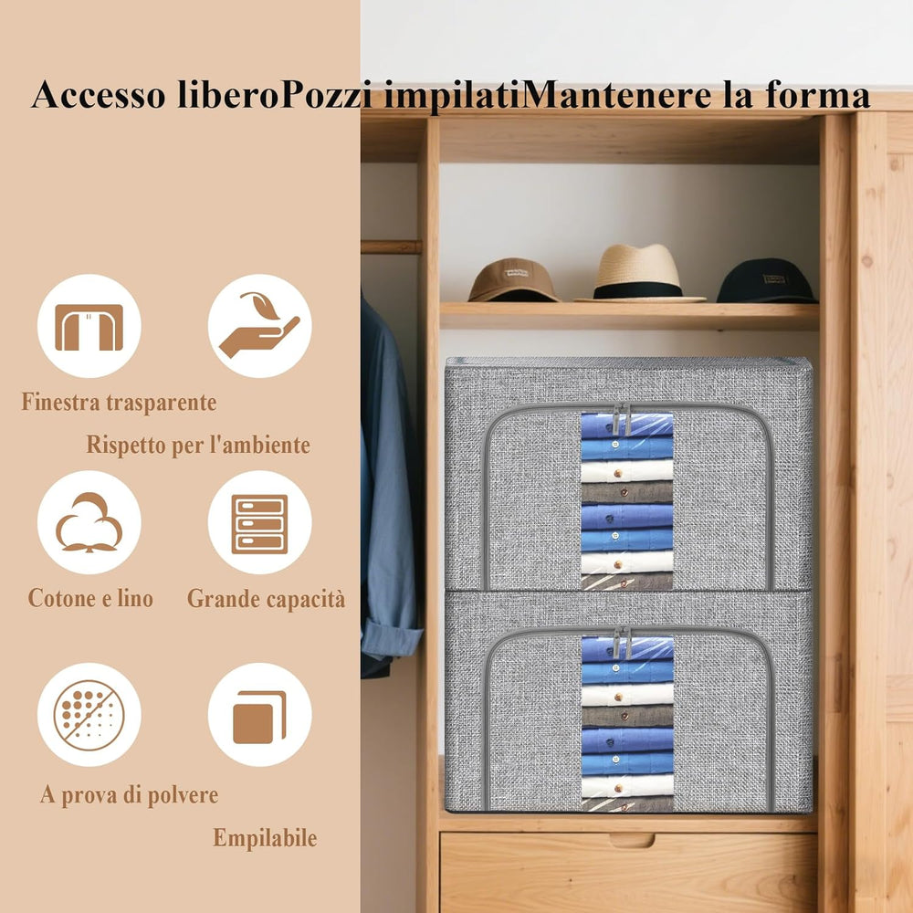 Aufbewahrungsbeutel mit Reissverschlüssen,2 Stück, Leinen-Aufbewahrungstasche, 24 l, 66 l, 100 l, gr