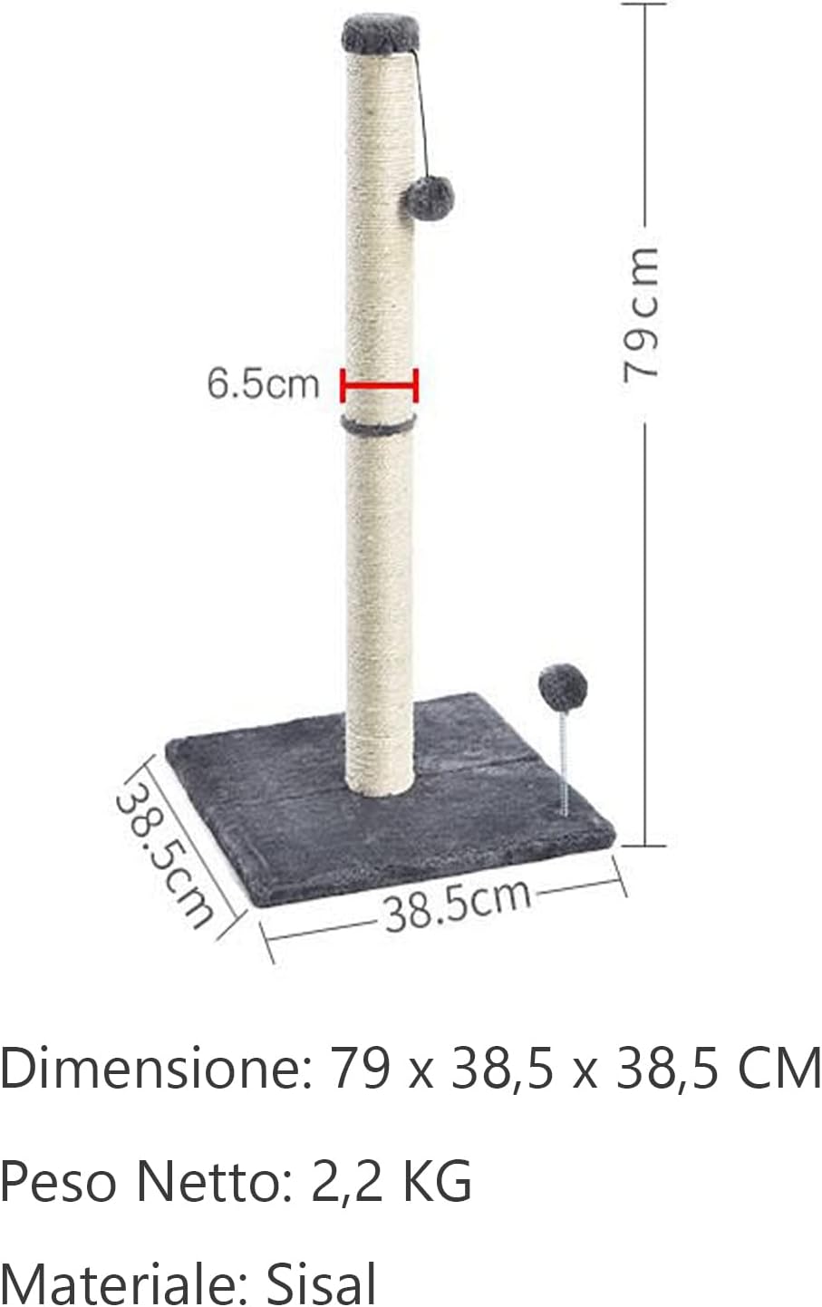 Kratzsäule für Katzen,Kratzbaum für Katzen 80cm Kratzsäule XXL Natural Sisal Seil Pole mit hängendem