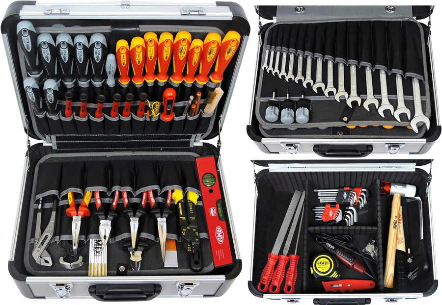 FAMEX 755-58 Alu Werkzeugkoffer Gefüllt 164-tlg. - Werkzeugkasten bestückt mit Werkzeug Set