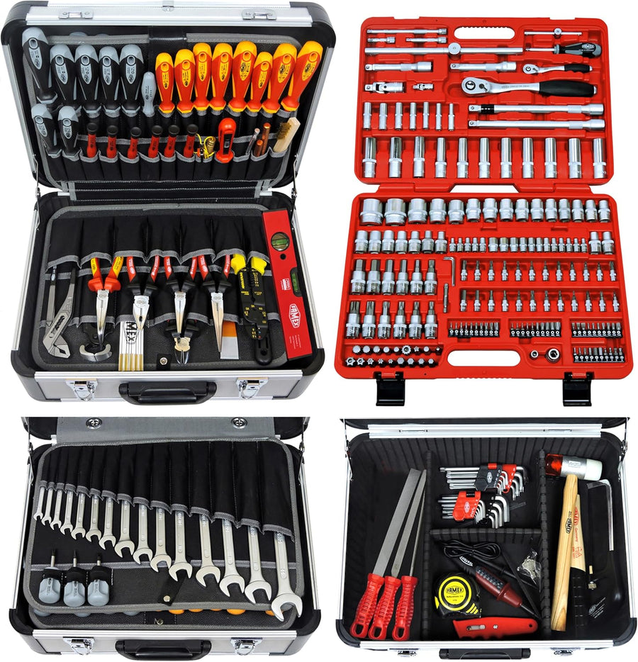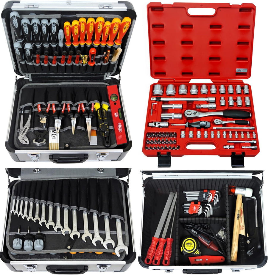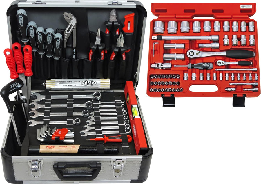 FAMEX 414-18 Profi Alu Werkzeugkoffer mit Werkzeug Set und Steckschlüsselsatz in High-End-Qualität -