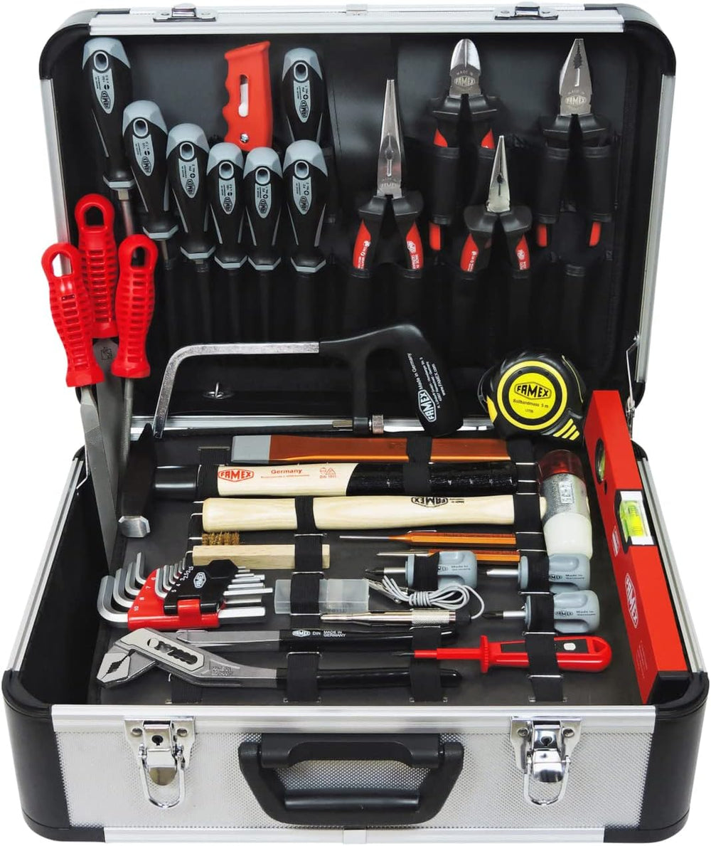 FAMEX 418-88 Profi Alu Werkzeugkoffer gefüllt mit Werkzeugset gross, für den gewerblichen Einsatz, W