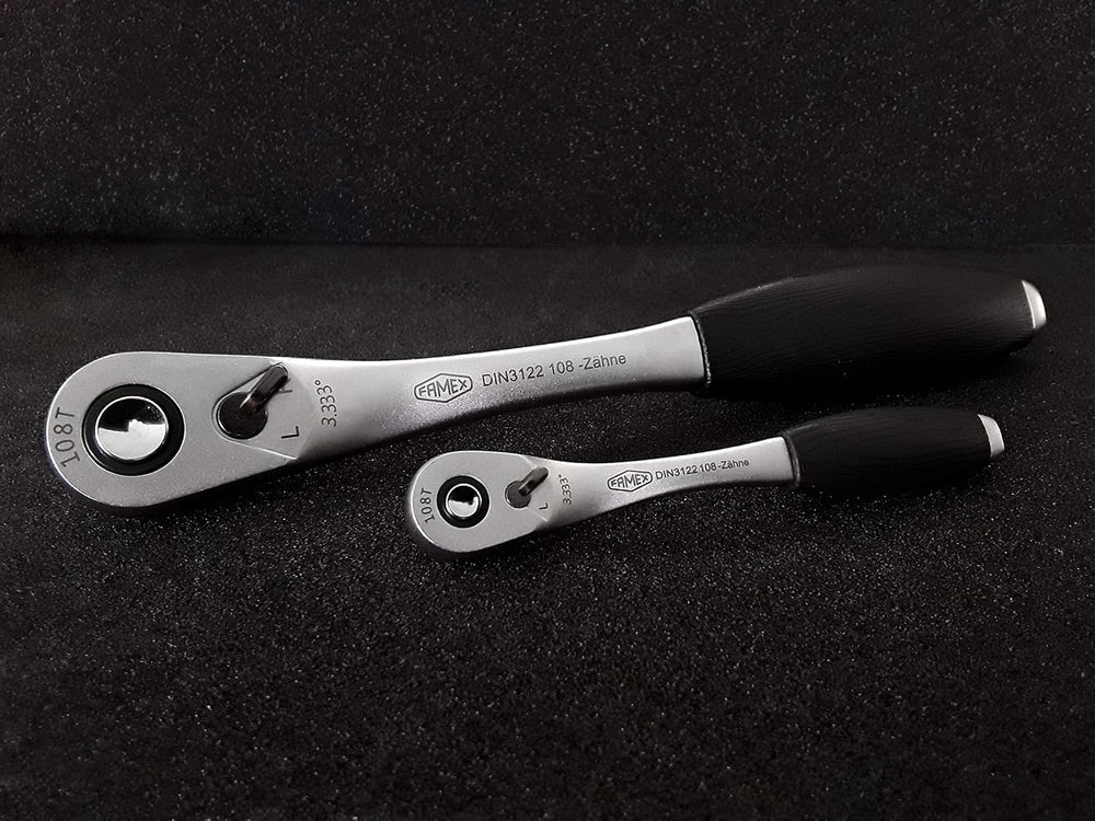 FAMEX 525-SD-16 Mechaniker Steckschlüsselsatz - 108-Zahn Feinzahn Knarren - Schwenkverlängerungen -