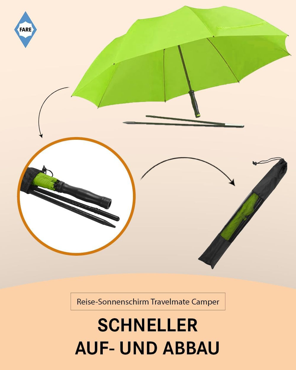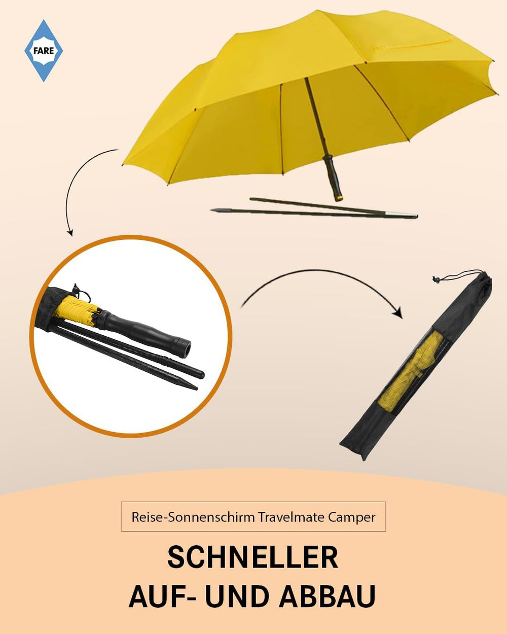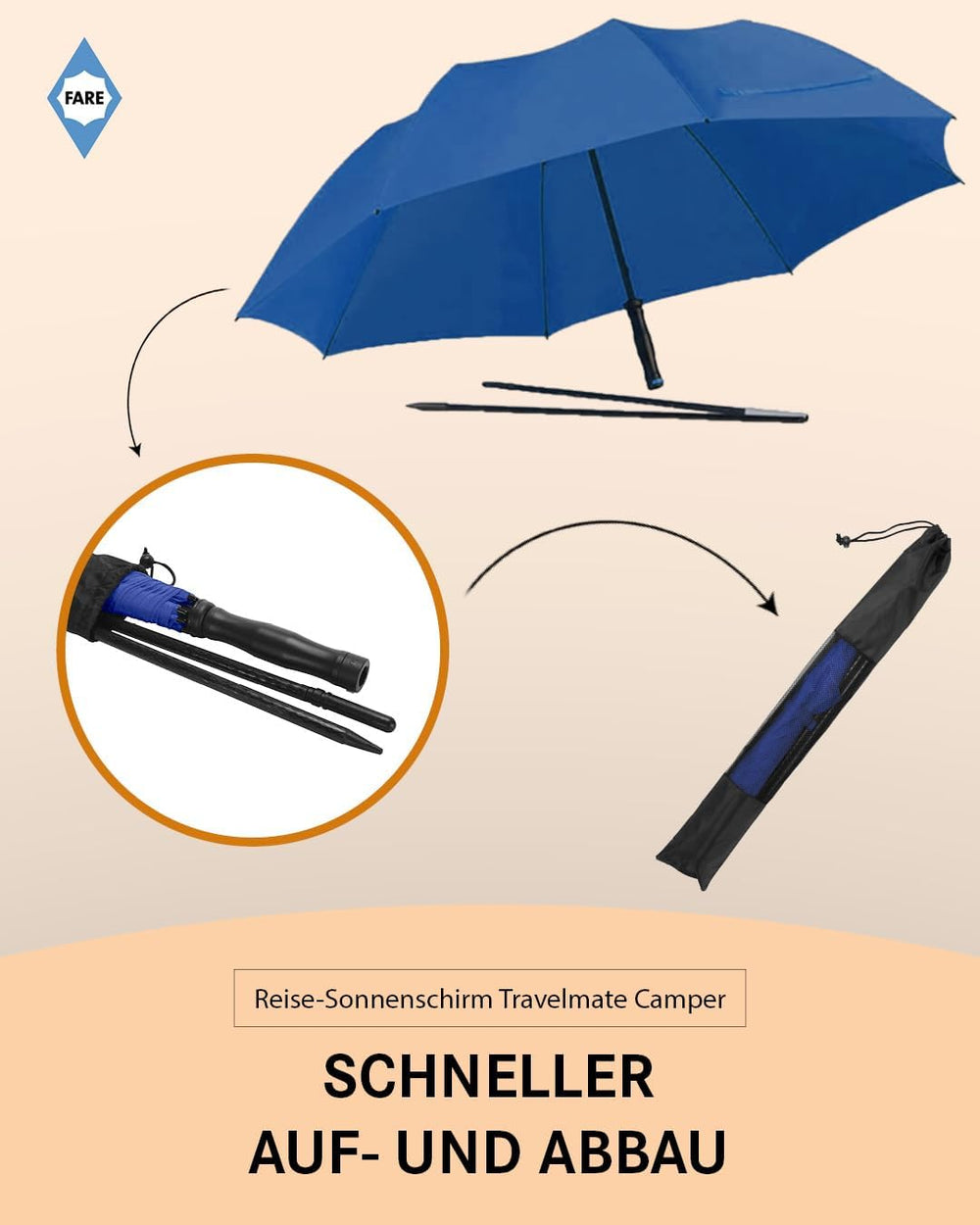 FARE Reise-Sonnenschirm Travelmate Camper UV Schutz 50+ für Koffer Flugzeug Camping Balkon Strand Ga