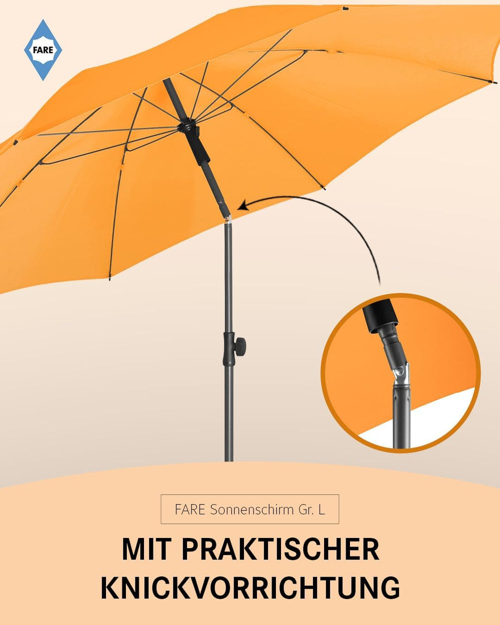 FARE Sonnenschirm Gr. XL - 235 cm Durchmesser - UV-Schutz 50+ für Balkon Garten Terrasse Sommer - Ti