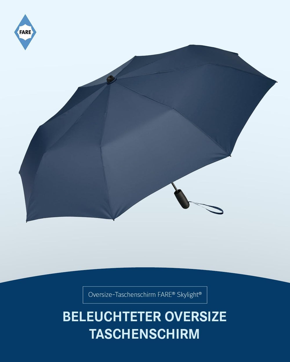 FARE Oversize-Taschenschirm Skylight (marine) - Effektvoller Regenschirm mit LED-Innenbeleuchtung un