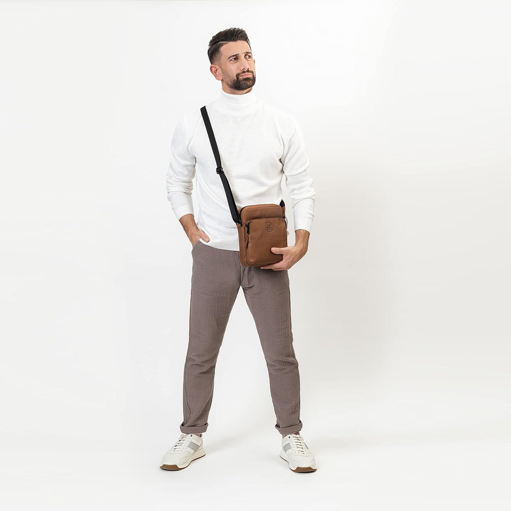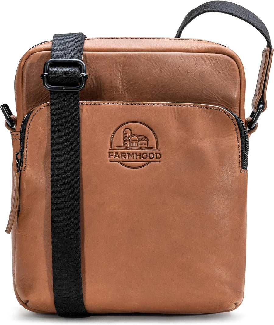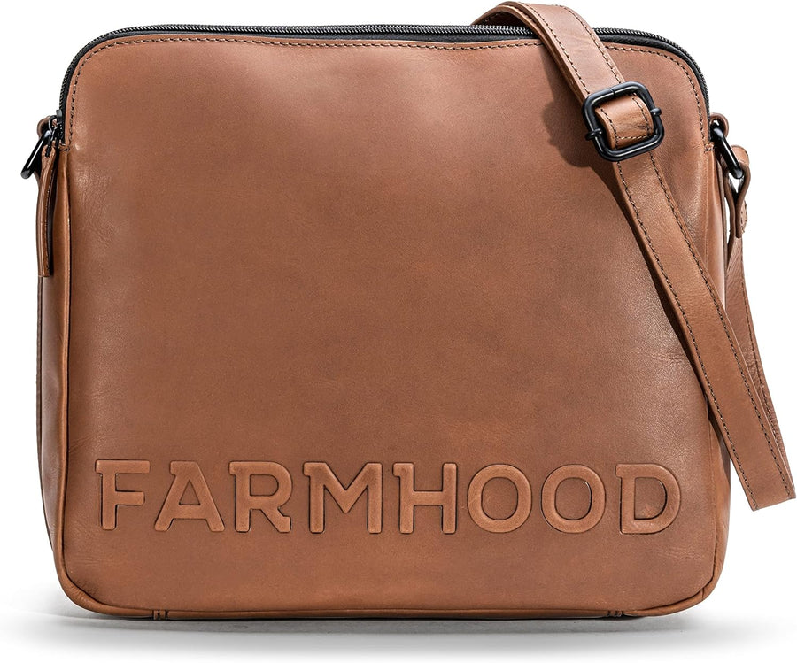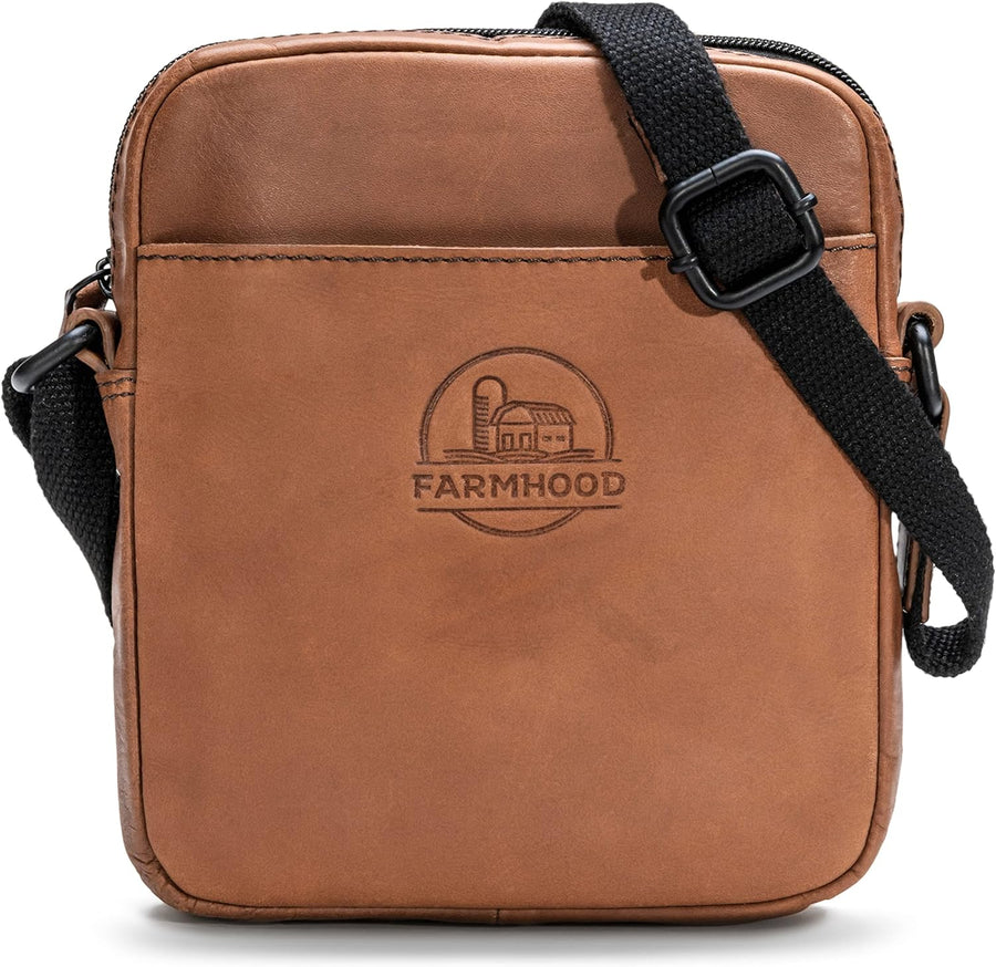 FARMHOOD Nashville Damen/Herren Leder Umhängetasche | längenverstellbarer Schulterriemen & Reissvers