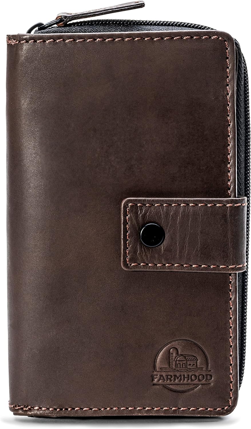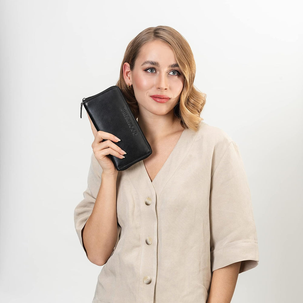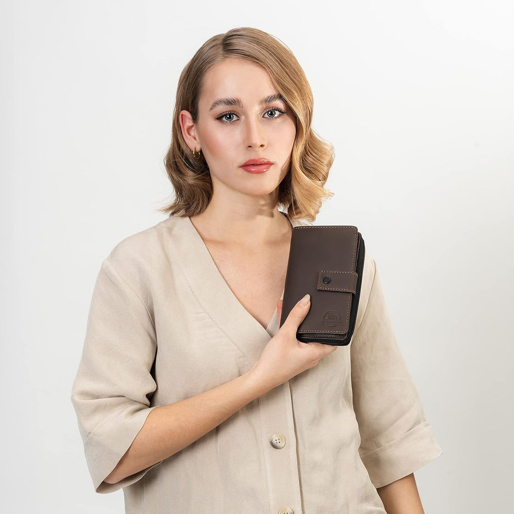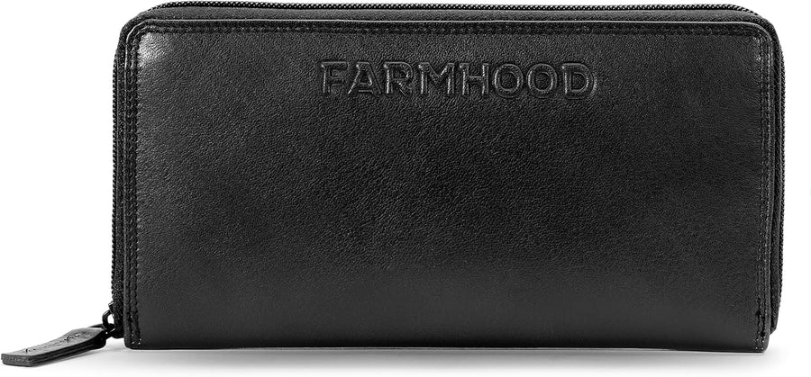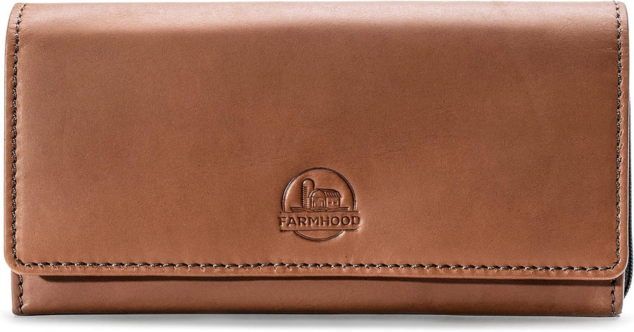 FARMHOOD Nashville Damen grosse Echtleder Geldbörse | RFID-Schutz & viele Fächer | Portemonnaie Hoch