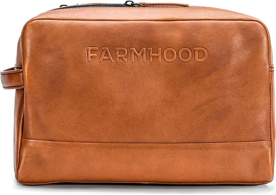 FARMHOOD Memphis Damen/Herren grosser Leder Kulturbeutel | viele Fächer mit Reissverschluss | Kosmet
