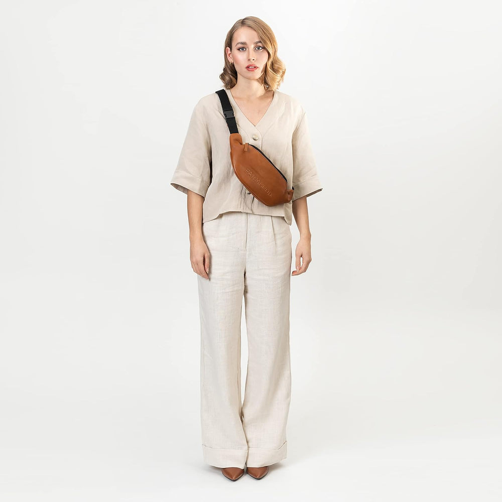 Farmhood Memphis Damen/Herren Gürteltasche aus Leder 34 cm - Hüfttasche mit Reissverschlussfach auf