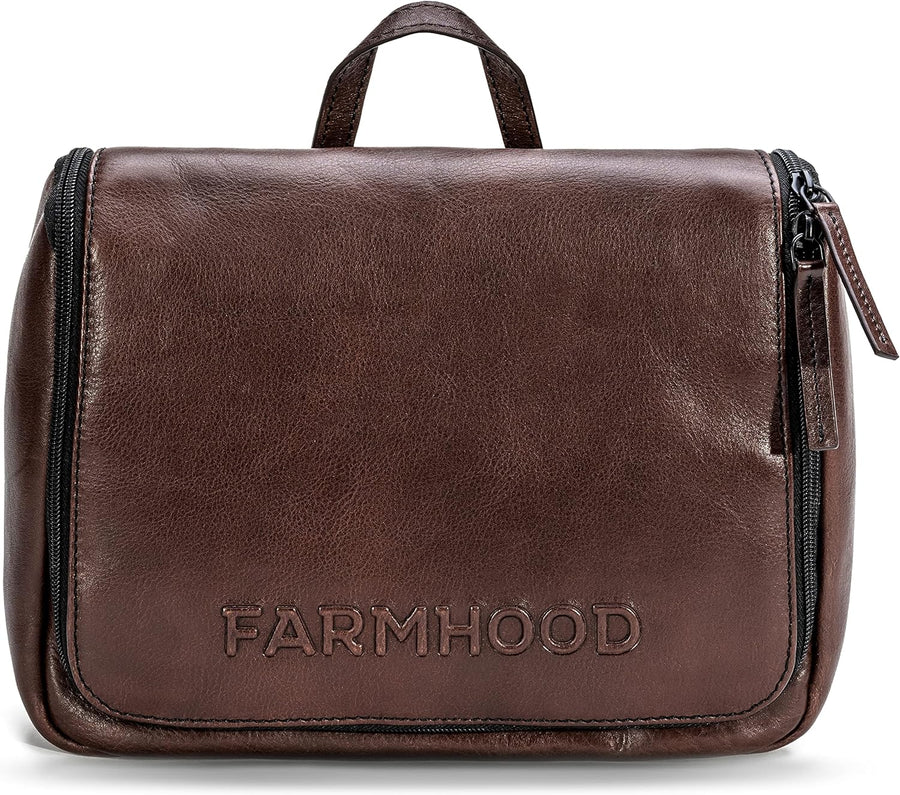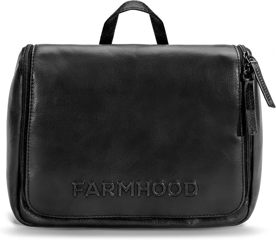 FARMHOOD Memphis Damen/Herren XL Leder Kulturbeutel | mit 2 Hauptfächern | Kosmetiktasche 30 cm Dark