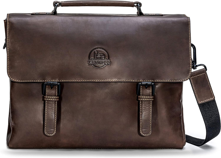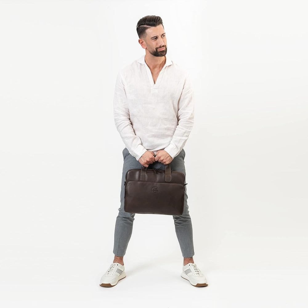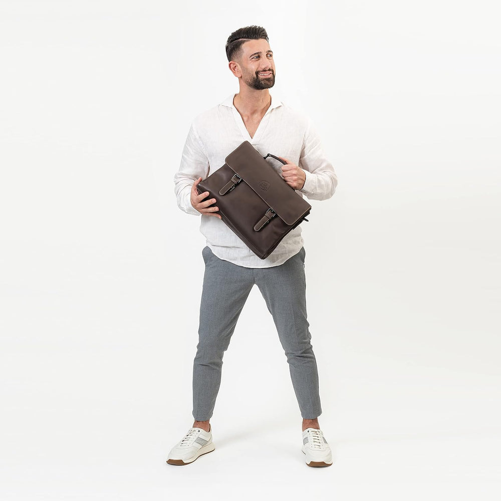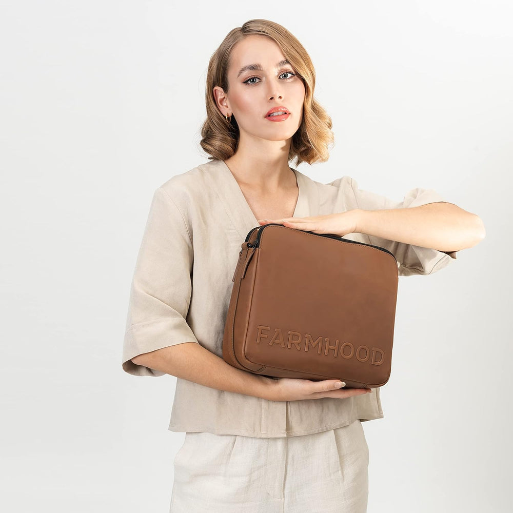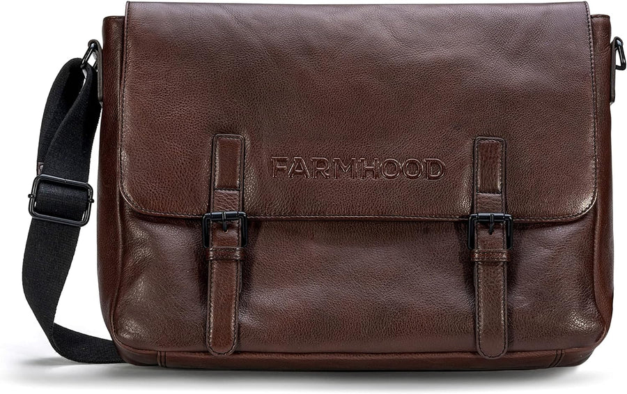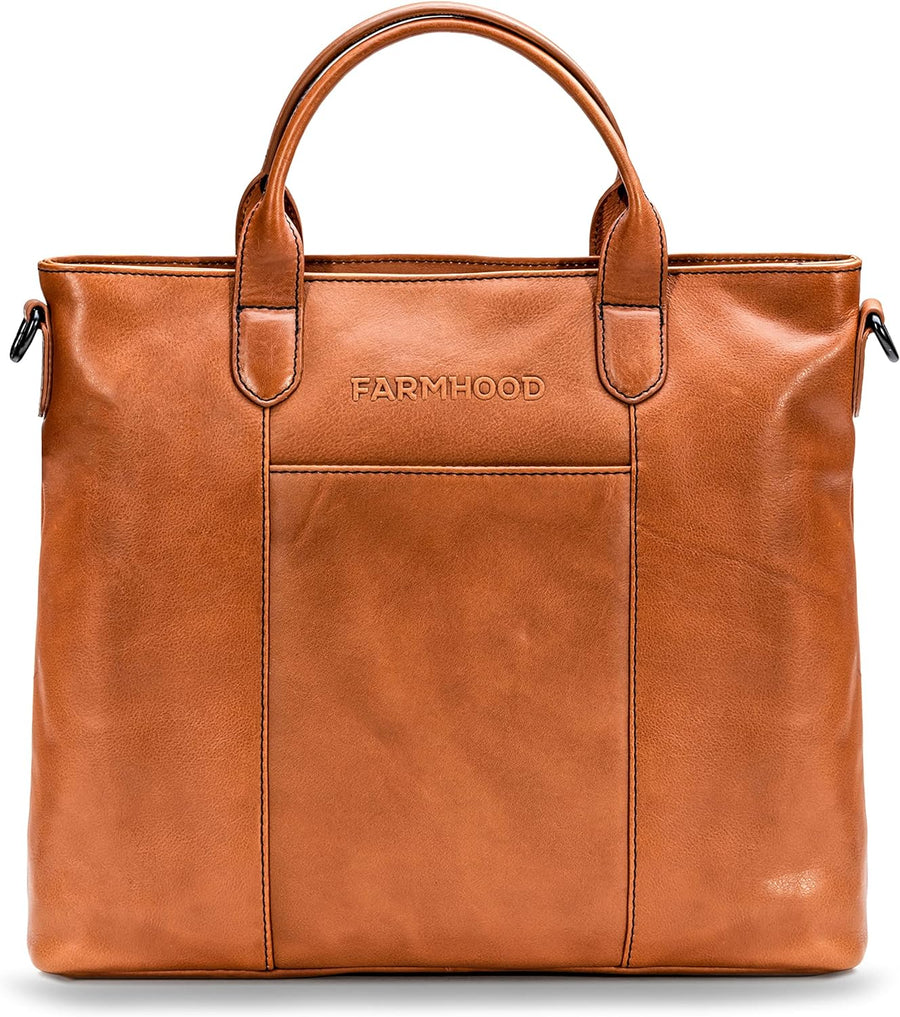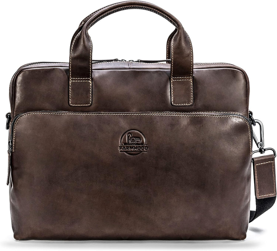 Farmhood Memphis Damen/Herren Leder Aktentasche | Umhängetasche mit Laptopfach und Handyfach | 38,5