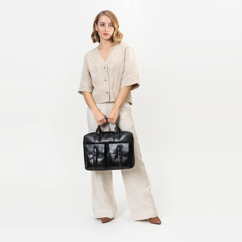 FARMHOOD Memphis Damen/Herren Aktentasche gross 38 cm - Umhängetasche mit 2 aufgesetzten Vordertasch