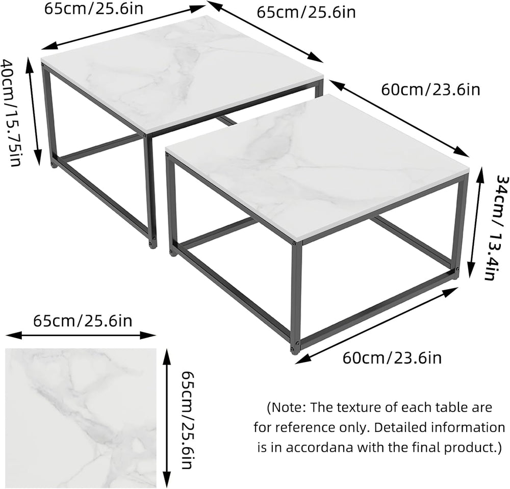 FATIVO Marmor Couchtisch 2er Set, Weiss Satztisch Rund Wohnzimmertisch mit schwarz Metallrahmen - Sa