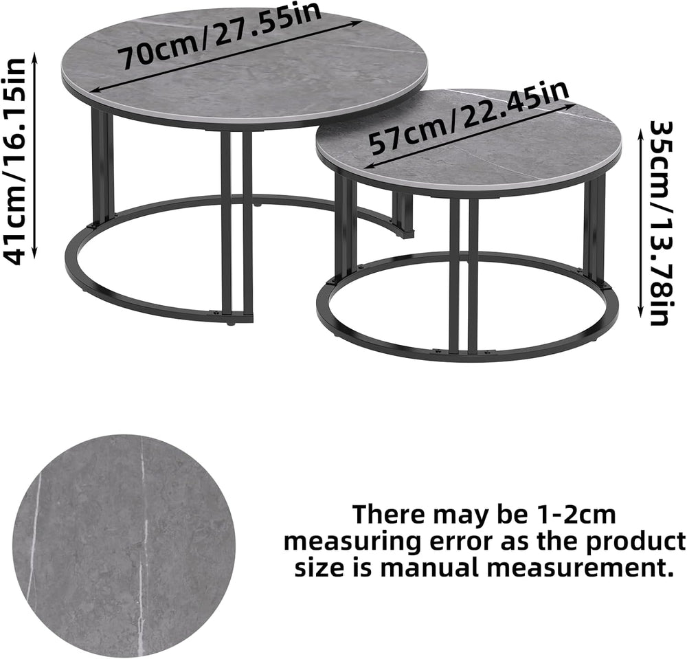 FATIVO Marmor Couchtisch 2er Set, Satztisch Rund Wohnzimmertisch mit schwarz Metallrahmen - Stabiler