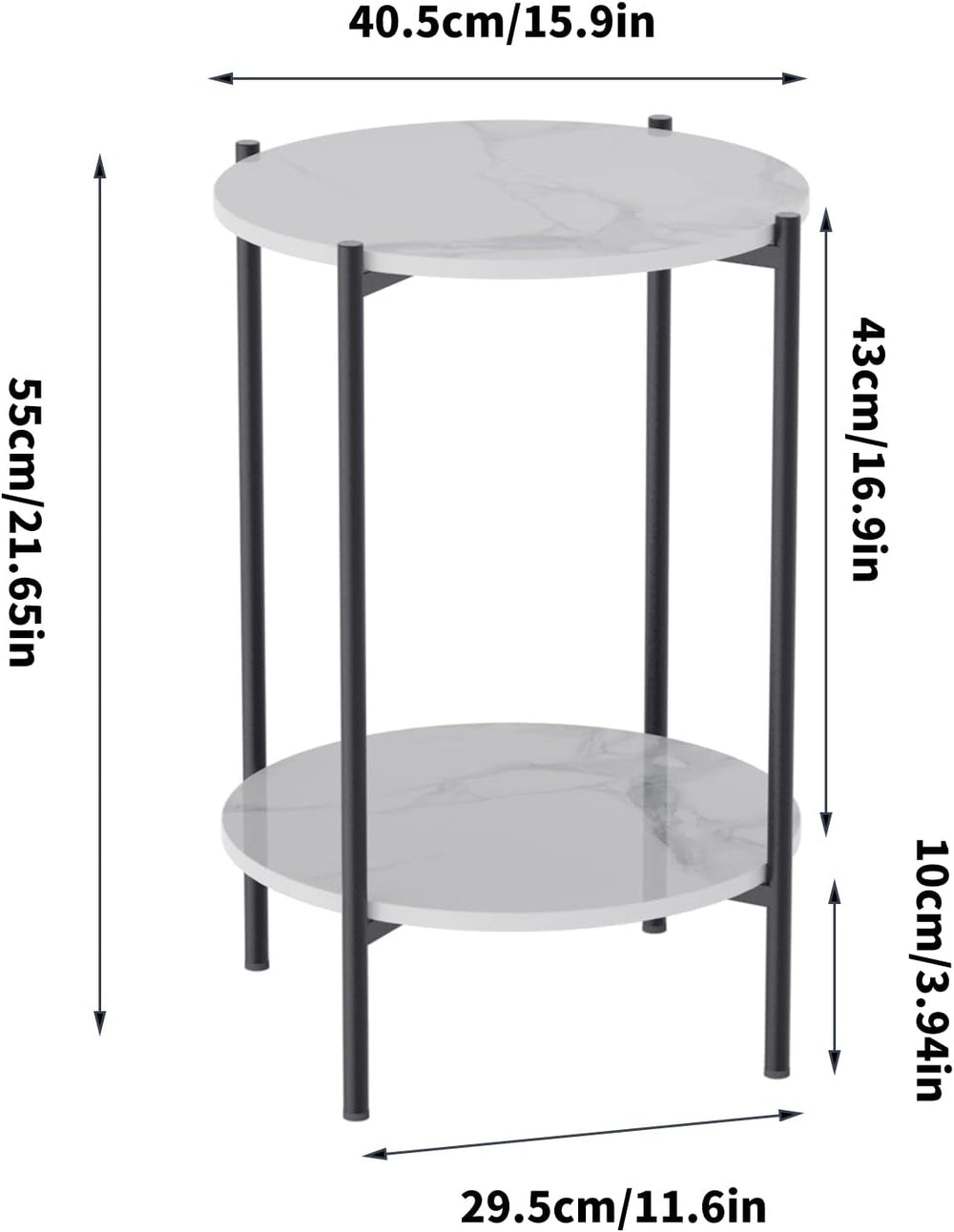 FATIVO Marmor Couchtisch Beistelltisch Sofatisch: 2 Ablagen Beistelltisch rund Nachttisch fürs Wohnz