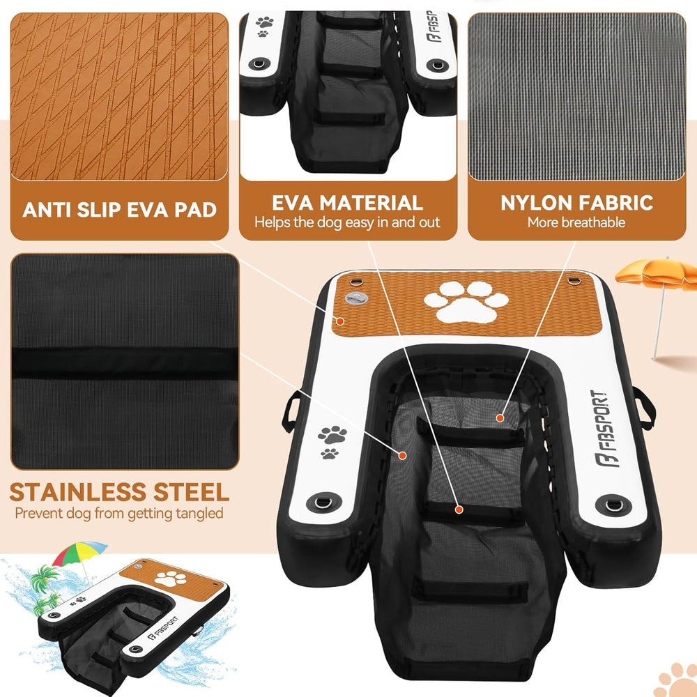 FBSPORT Hunderampe Aufblasbare Hunde Wasserrampe, Hundeboot Rampe Schwimmende Dock Leiter für Pool,
