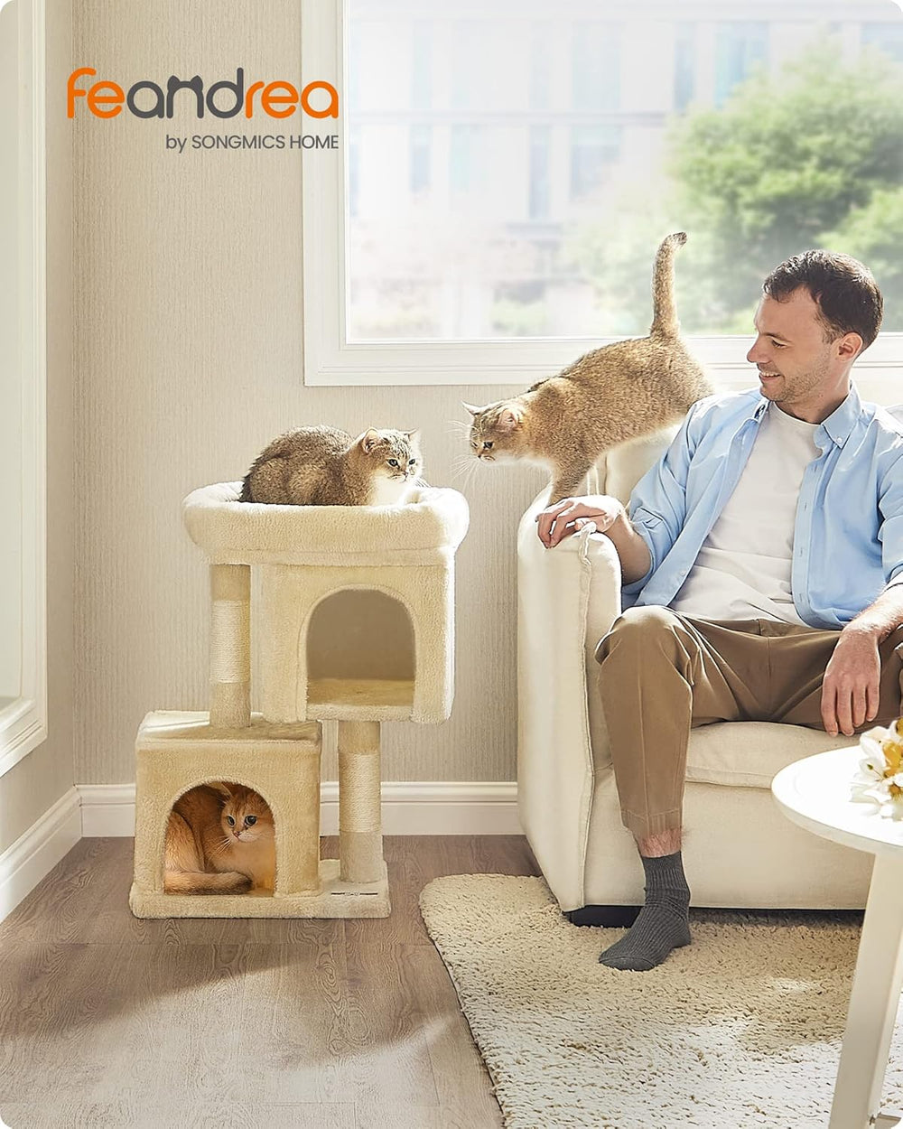 Feandrea Kletterbaum Kratzbaum mit Liegemulde 70 cm PCT82M Beige 50L x 50B x 70H cm, Beige 50L x 50B