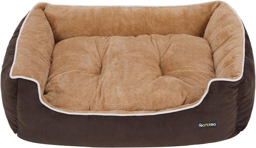 Feandrea Luxus Hundebett, weiches Hundekorb, L, mit abnehmbarem Kissen, 90 x 25 x 75 cm, braun und b