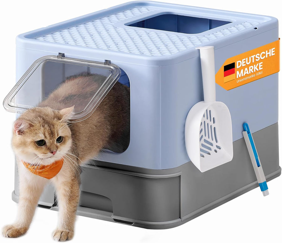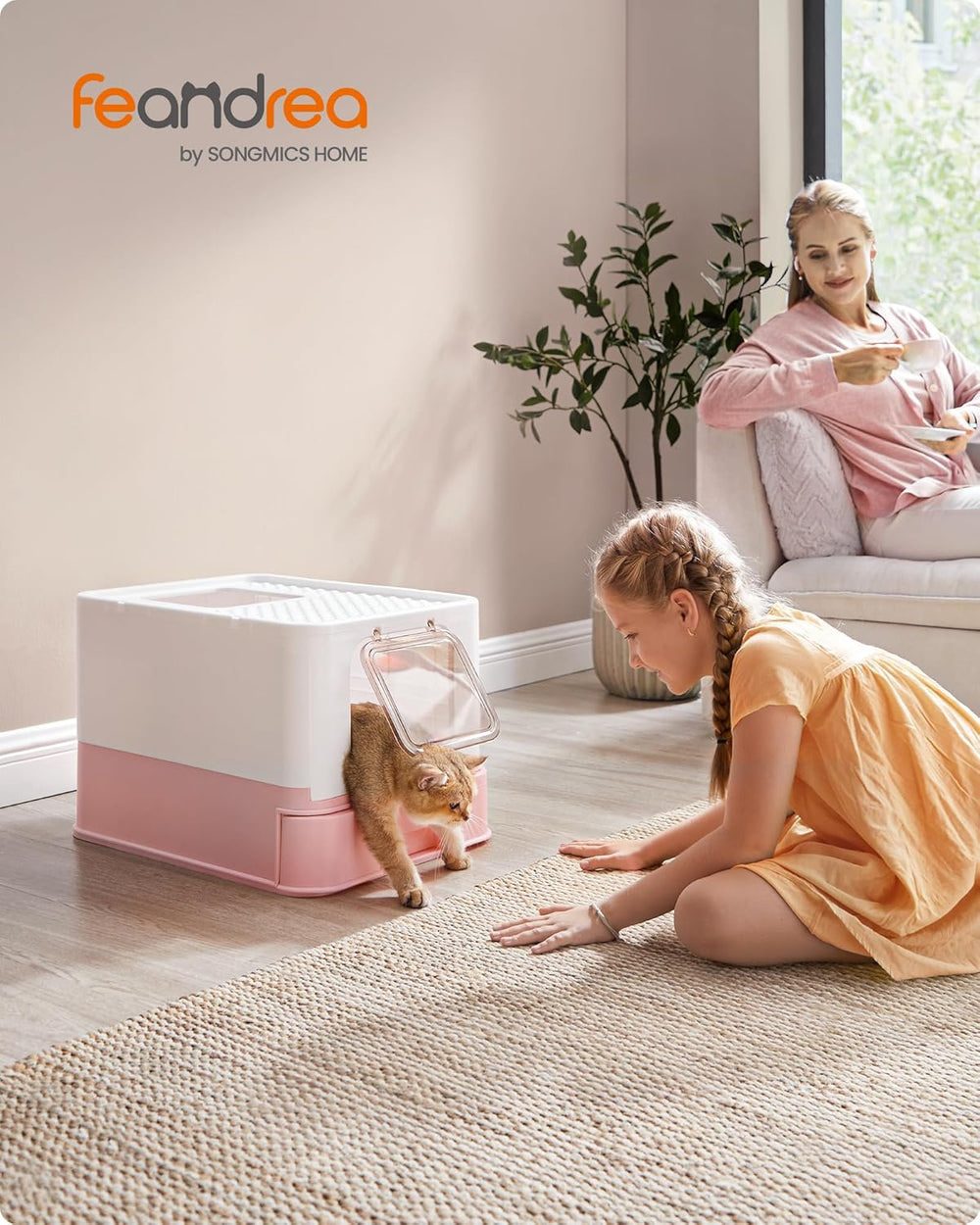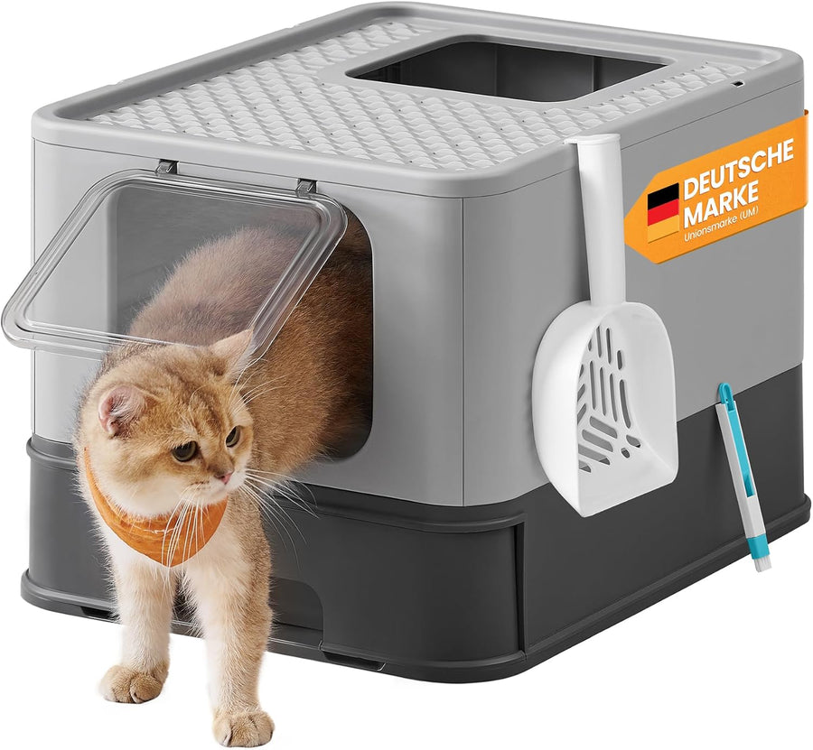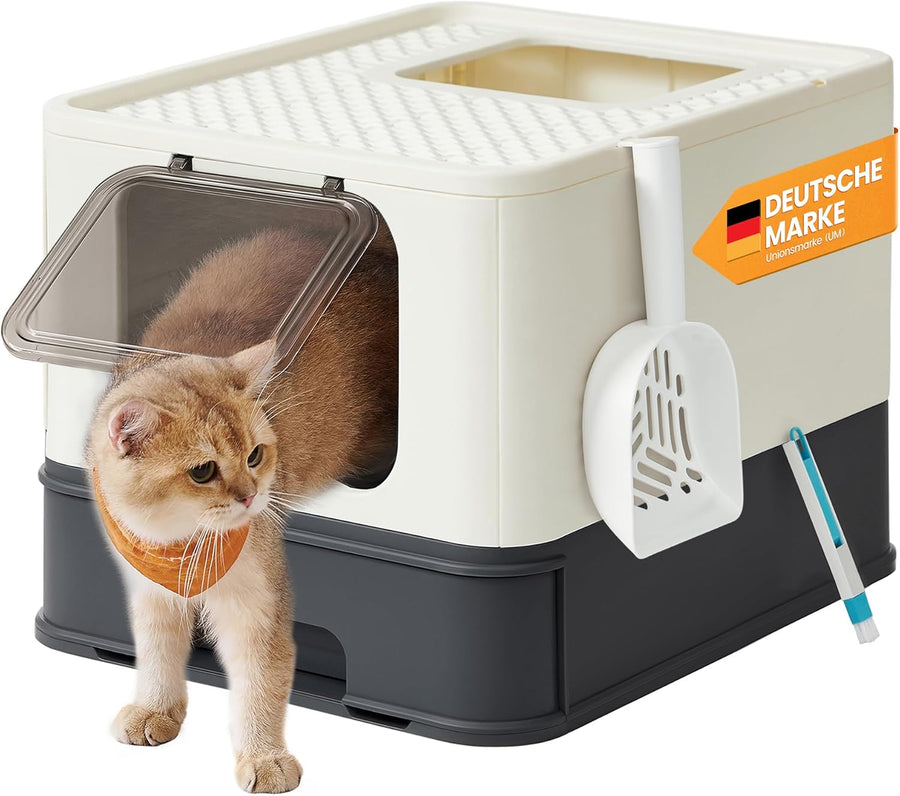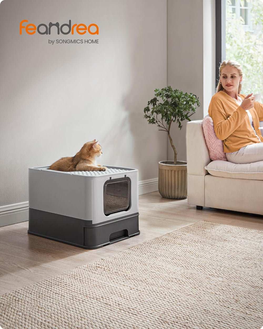Feandrea Katzenklo, Katzentoilette, mit Deckel, ausziehbares Tablett, Schaufel, Bürste, geräumig für