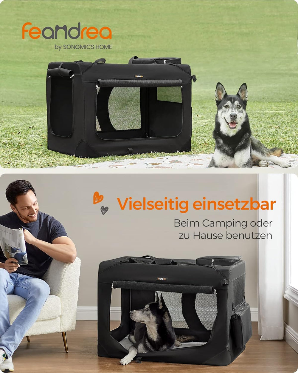 Feandrea Hundebox faltbar, Transportbox Hund, XXXL, Hundetasche, Oxford-Gewebe, Netzstoff, atmungsak