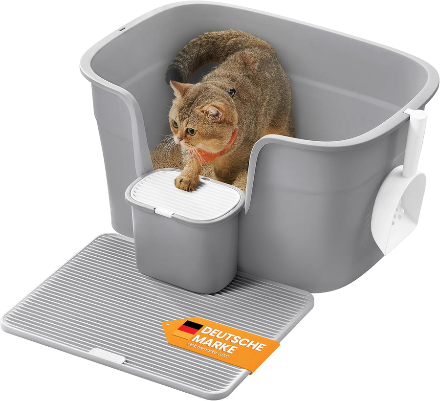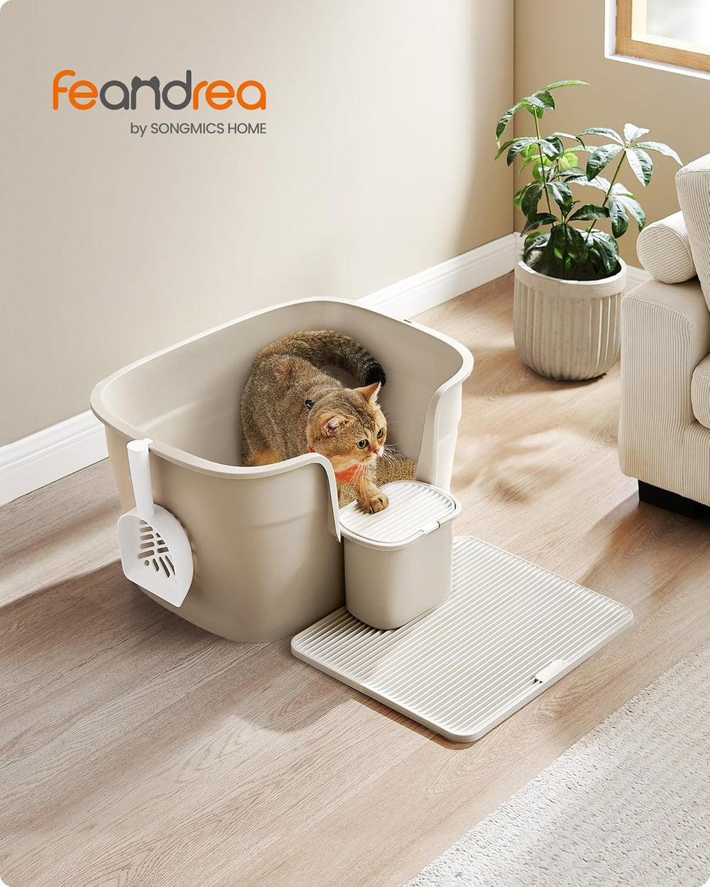 Feandrea Katzenklo, extragrosse Katzentoilette, mit hohen Seitenwänden, Katzenstreumatte, Aufbewahru