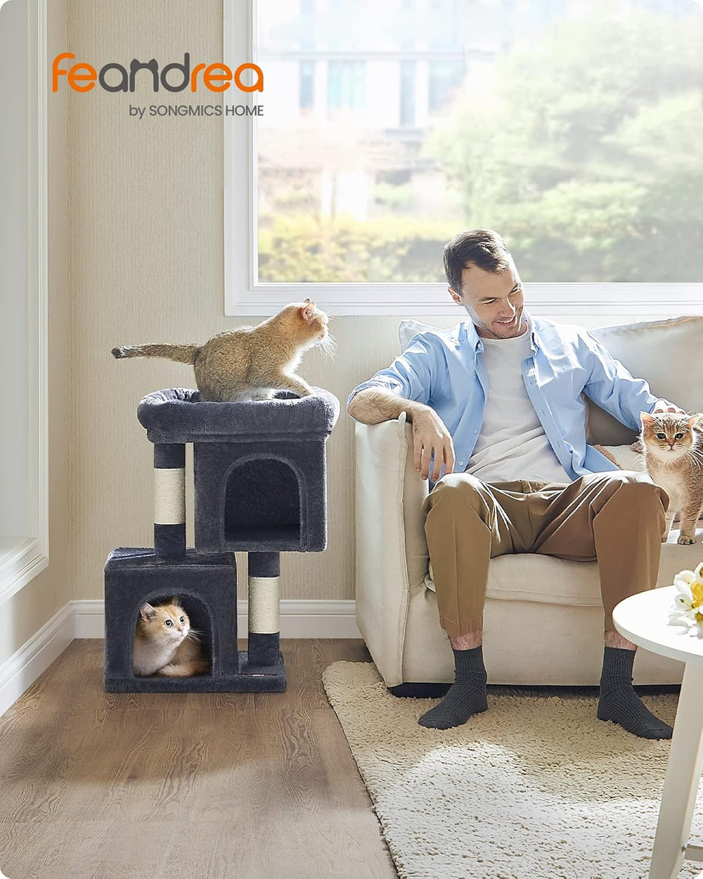Feandrea Kratzbaum, Kleiner Katzenbaum, mehrstufig, 68 cm, rauchgrau PCT59G 53L x 33l x 68H cm Rauch
