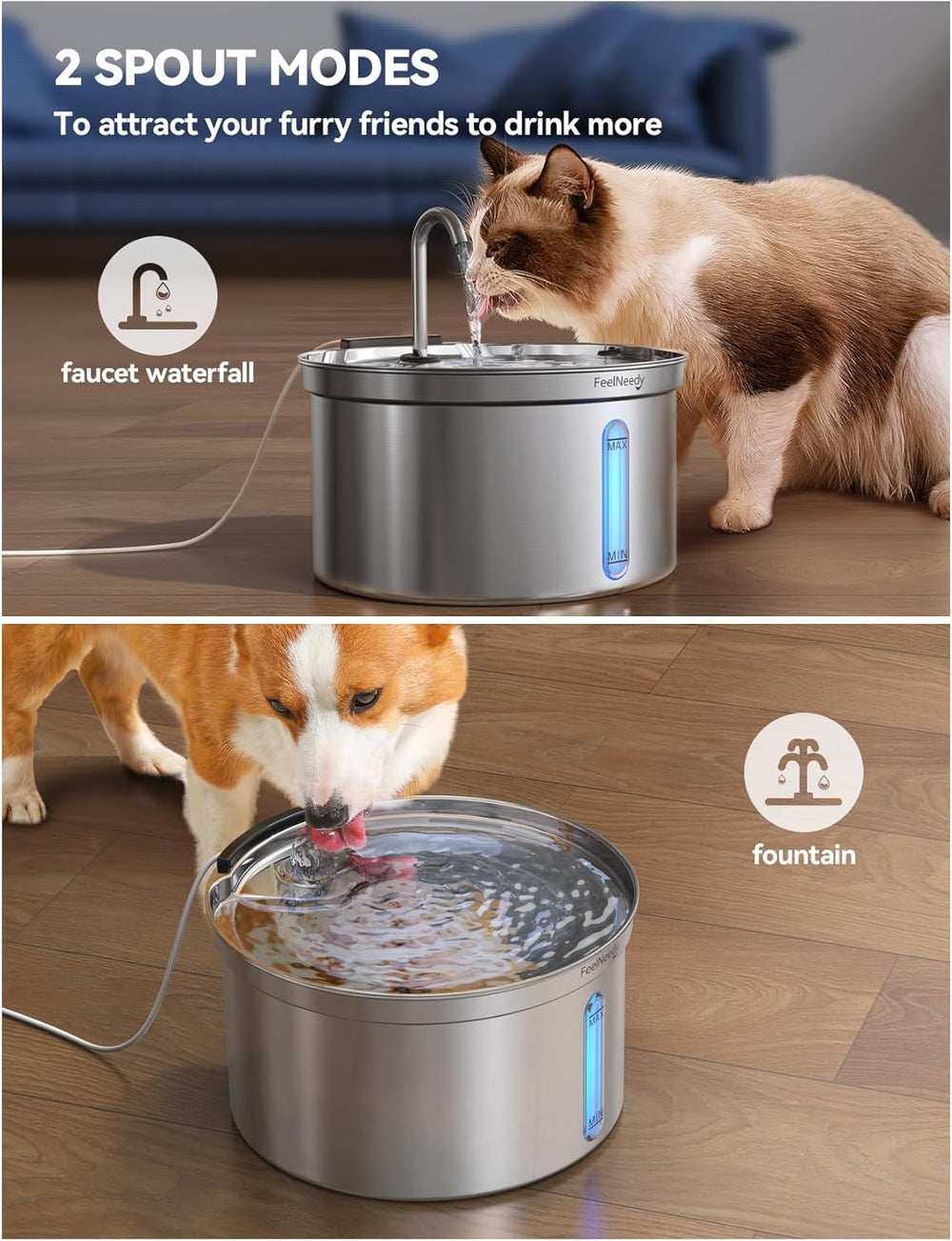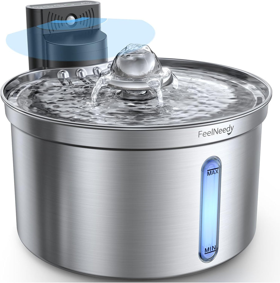 2.8L Katzenbrunnen Edelstahl mit 3 Filters, FEELNEEDY Trinkbrunnen für Katze, Katzentrinkbrunnen Ult
