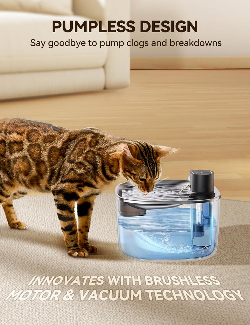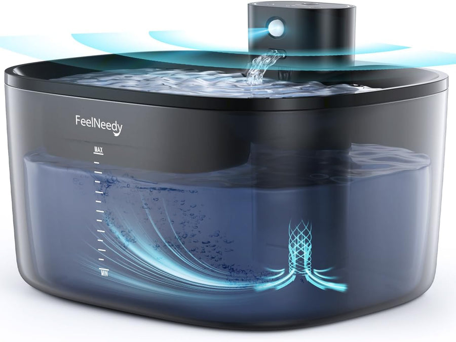 Katzenbrunnen Kabellos mit Bewegungsmelder und Akku 4000mAh Pumpenfreies Design FEELNEEDY 4L Trinkbr