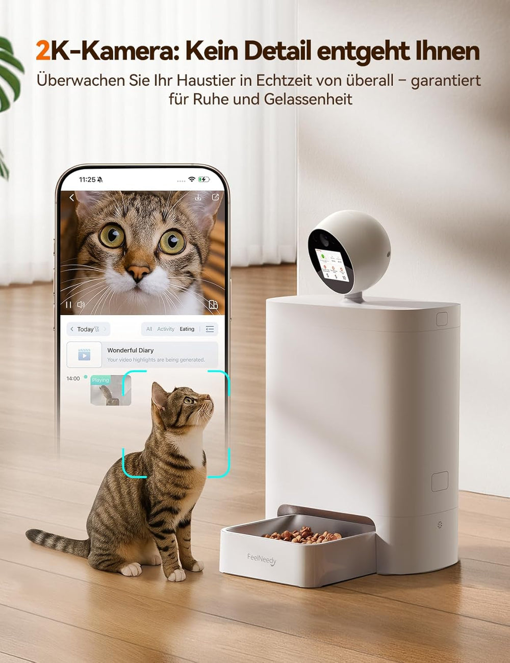 FEELNEEDY 5.5L Futterautomat Katze mit 3MP HD-360° Kamera, 2,4G/5G WiFi KI Katzenfutter Automat mit