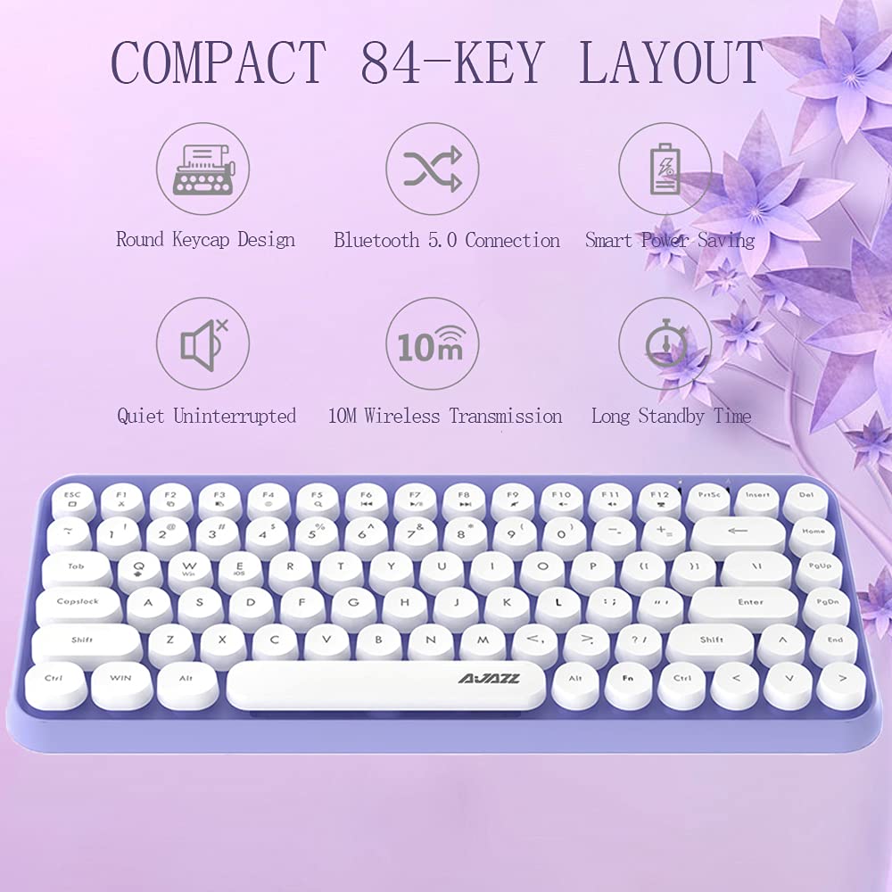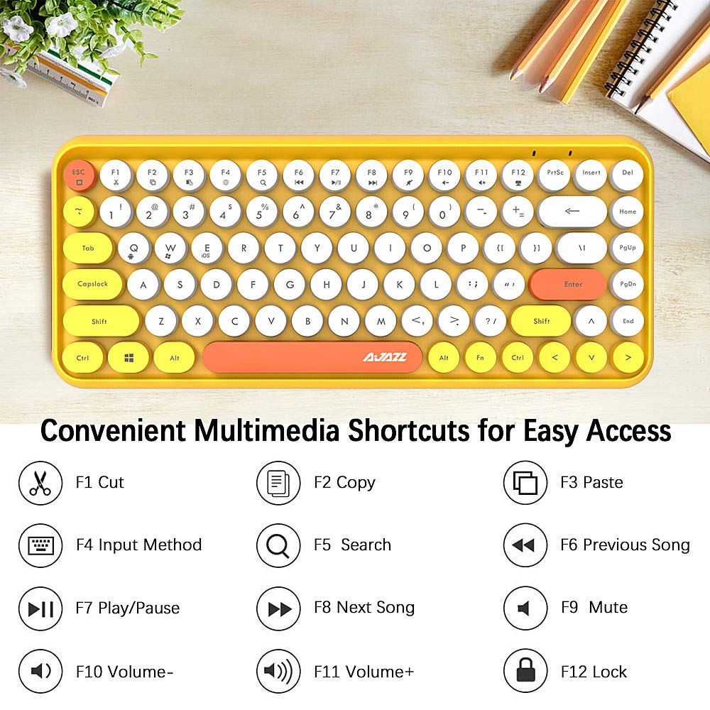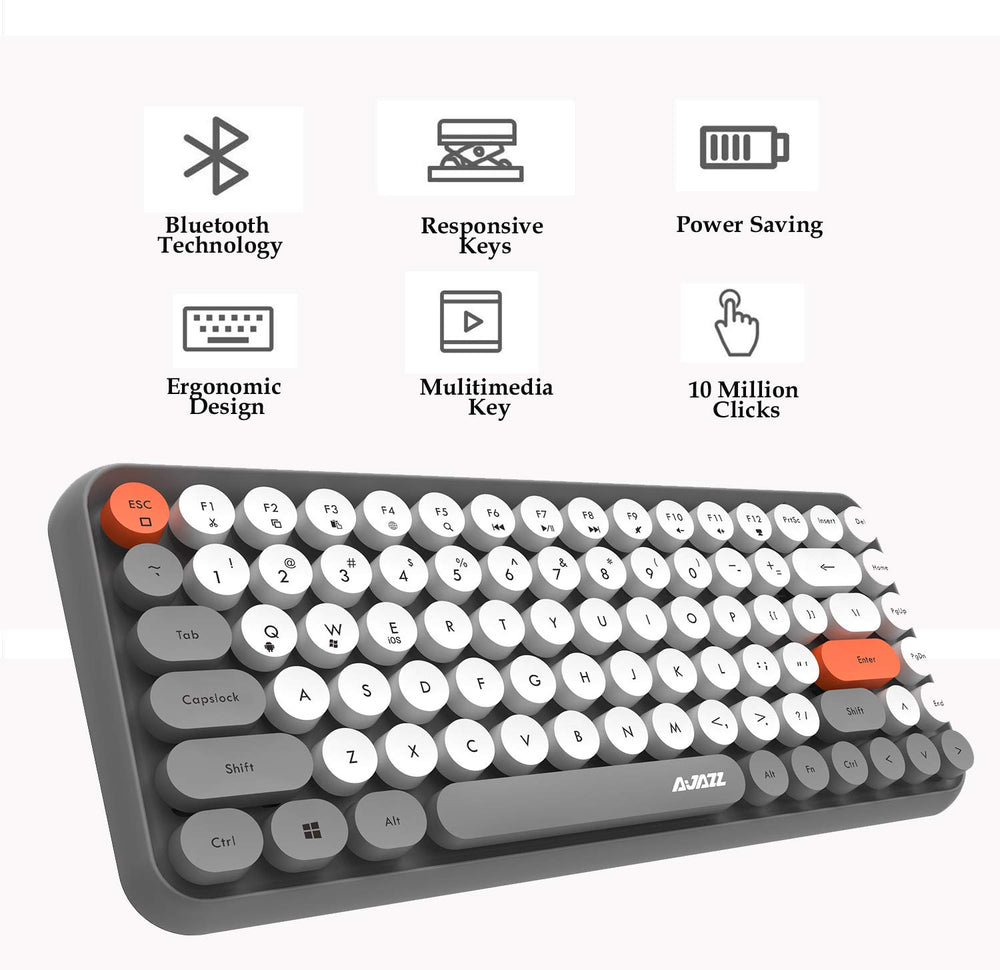 FELiCON 308i Kabellose Retro Tastatur, Bluetooth Silent Cute Computer Tastatur mit Runder Punk Taste