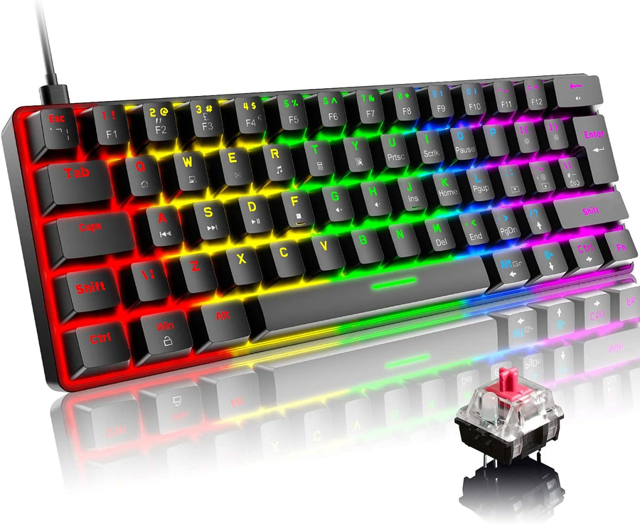 Mini 60% Gaming-Tastatur Kabelgebundene mechanische Keyboard, Kompakte Tragbare 62 Tasten, UK-Layout