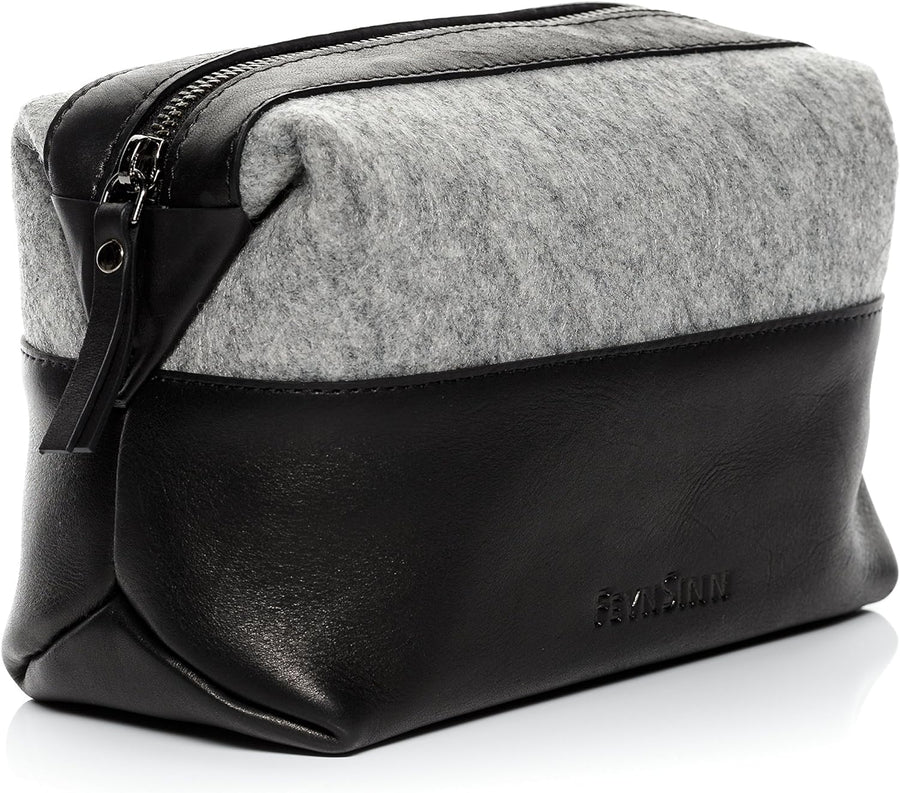 FEYNSINN Berlin Kulturtasche Herren Oslo aus Filz & Leder I Waschtasche gross für Herren und Damen I