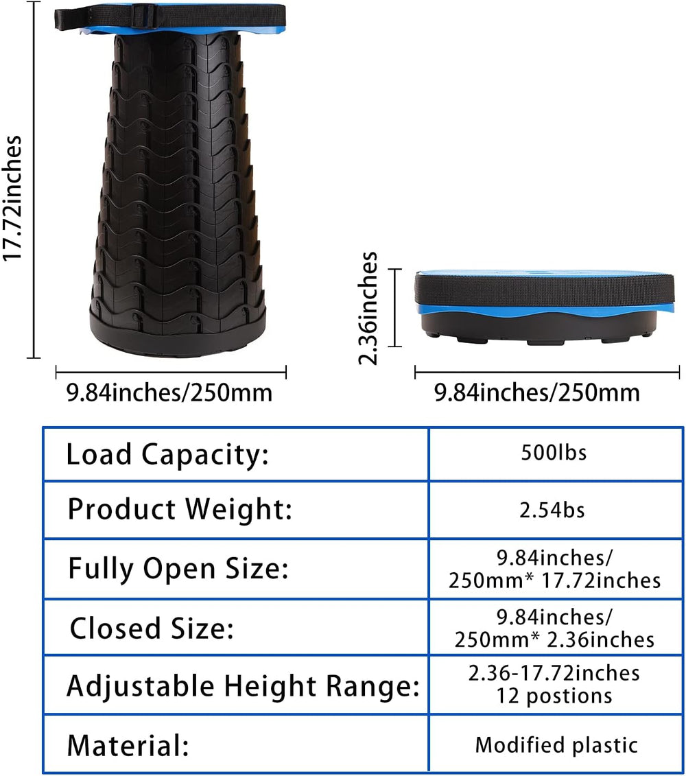 FIEMACH Tragbarer Klapphocker, Teleskophocker Faltbar Campinghocker für Outdoor Camping Angeln BBQ D