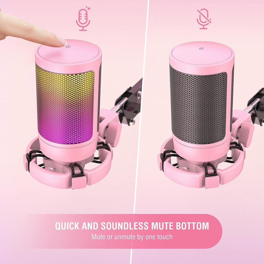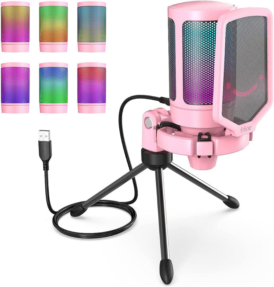 FIFINE USB Gaming Mikrofon, RGB Kondensator Mikrofone PC PS4 PS5, USB C Microphone mit Stummschaltta