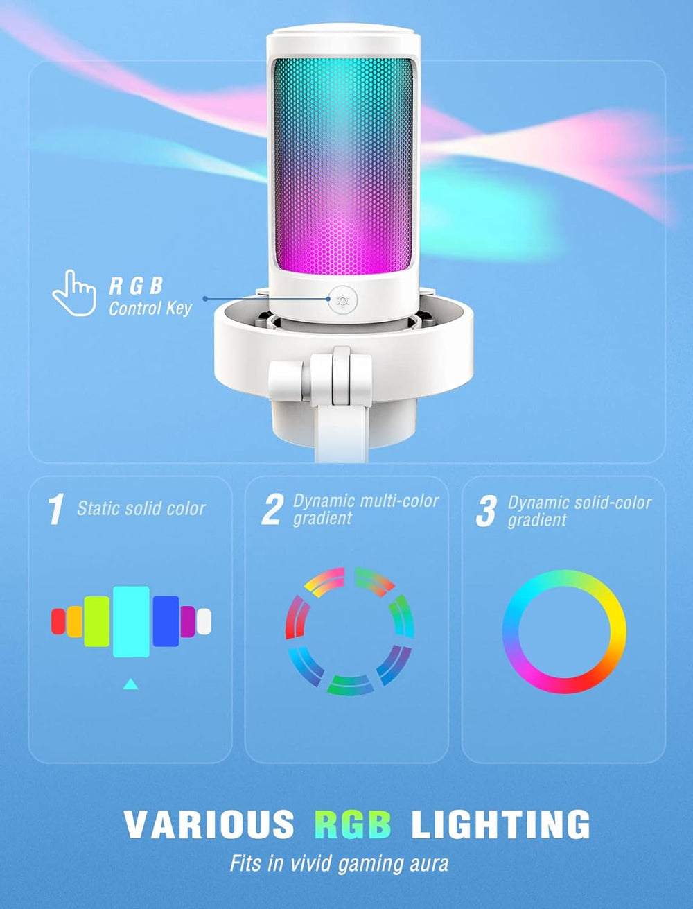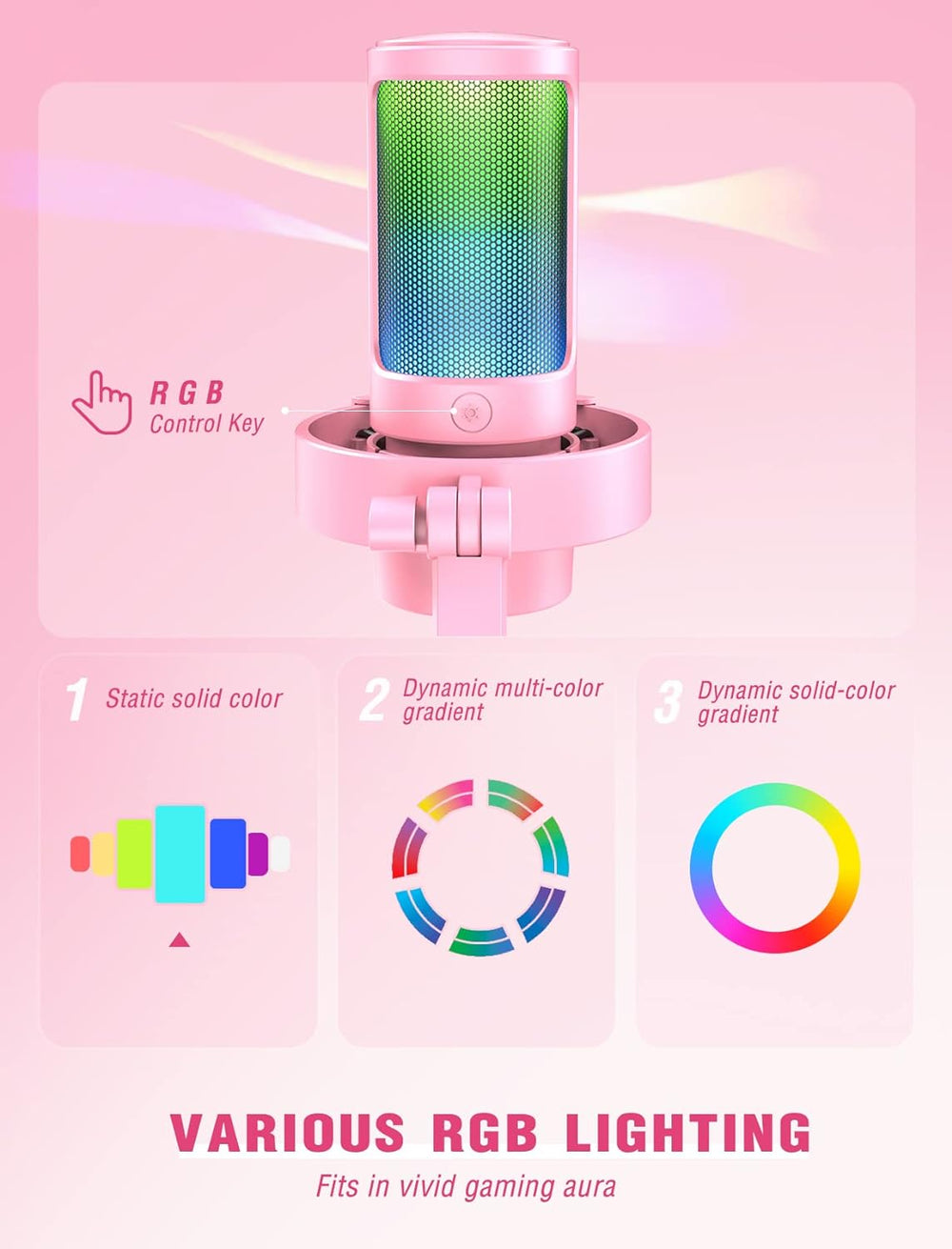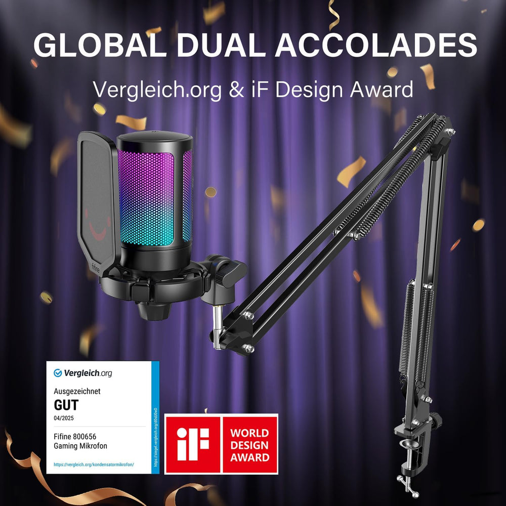 FIFINE Gaming Mikrofon PC mit Arm, 8 RGB Steuerungsmodi USB Microphone für MAC PS4 PS5, Dynamisches