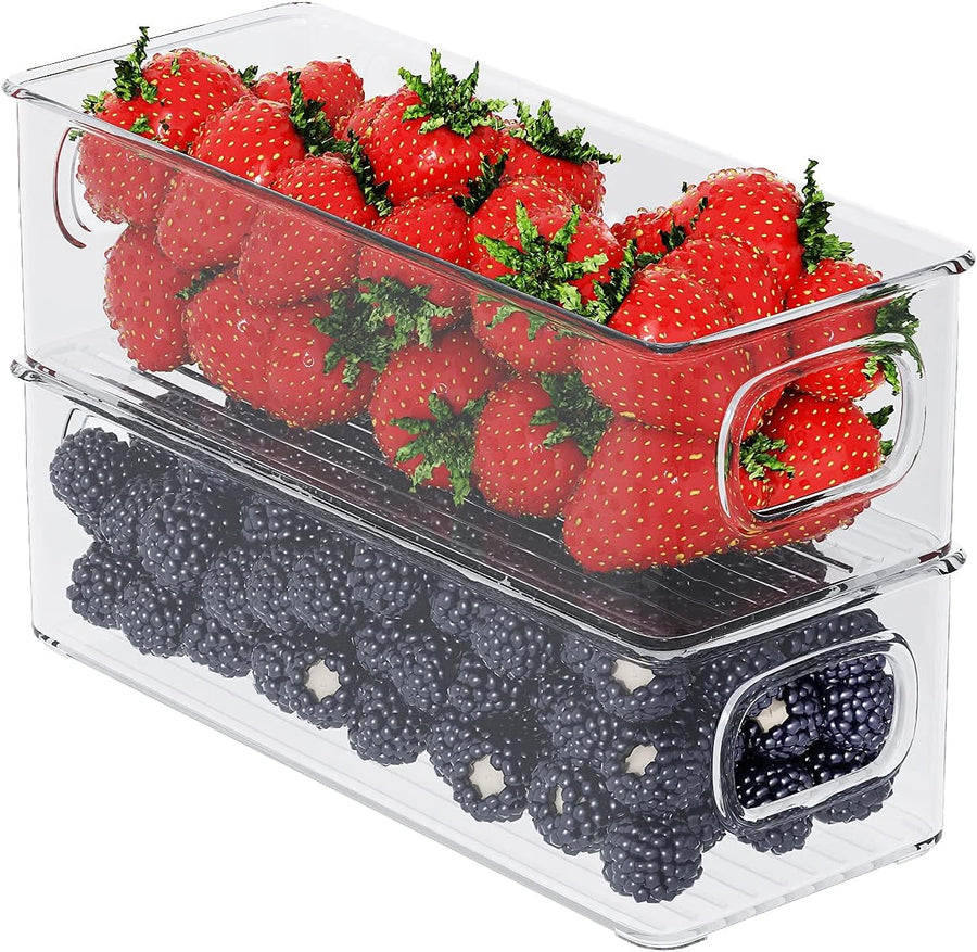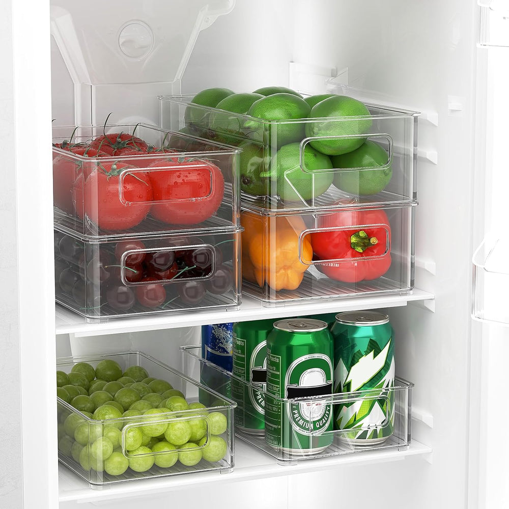FINEW Kühlschrank Organizer 8er Set, Stapelbare Aufbewahrungsbox, Klein Kühlschrank Boxen mit Griff,