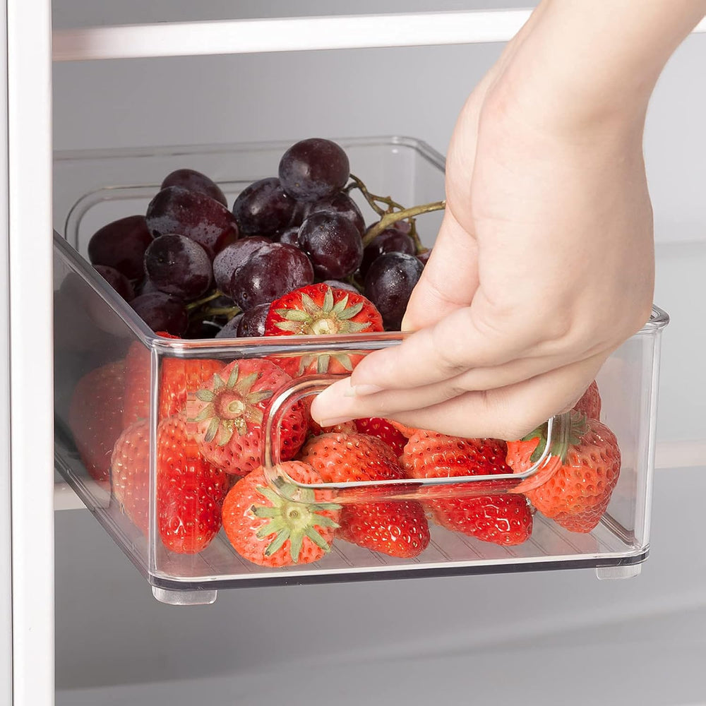 FINEW Kühlschrank Organizer 4er Set, Grosse Speisekammer Vorratsschrank mit Griff, Durchsichtig Boxe